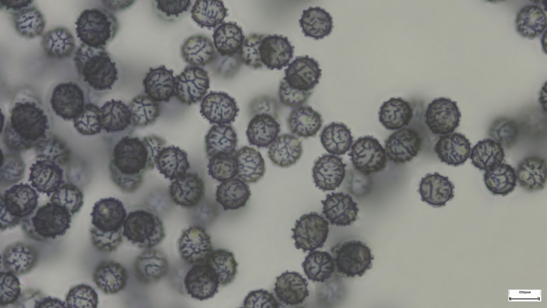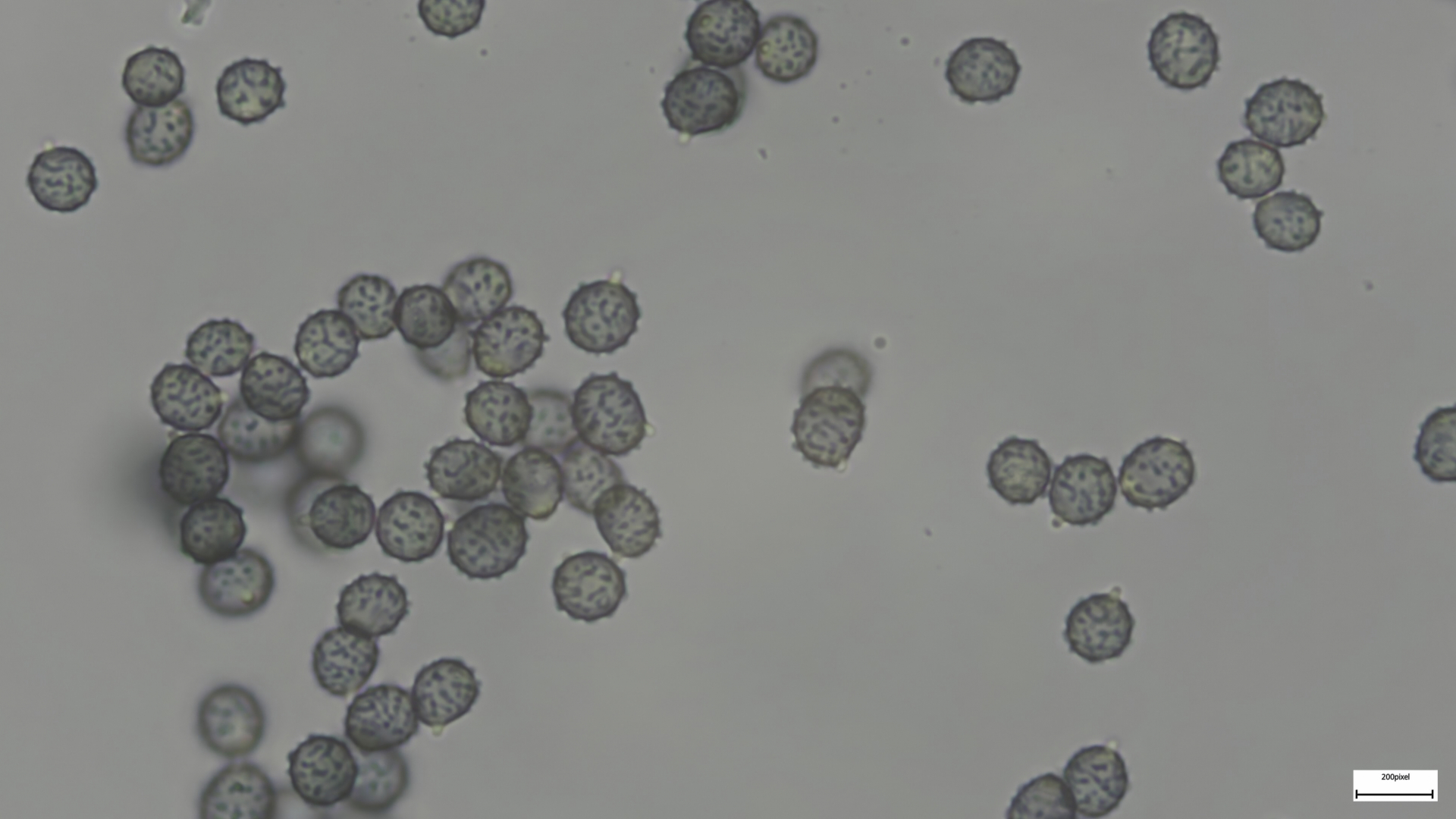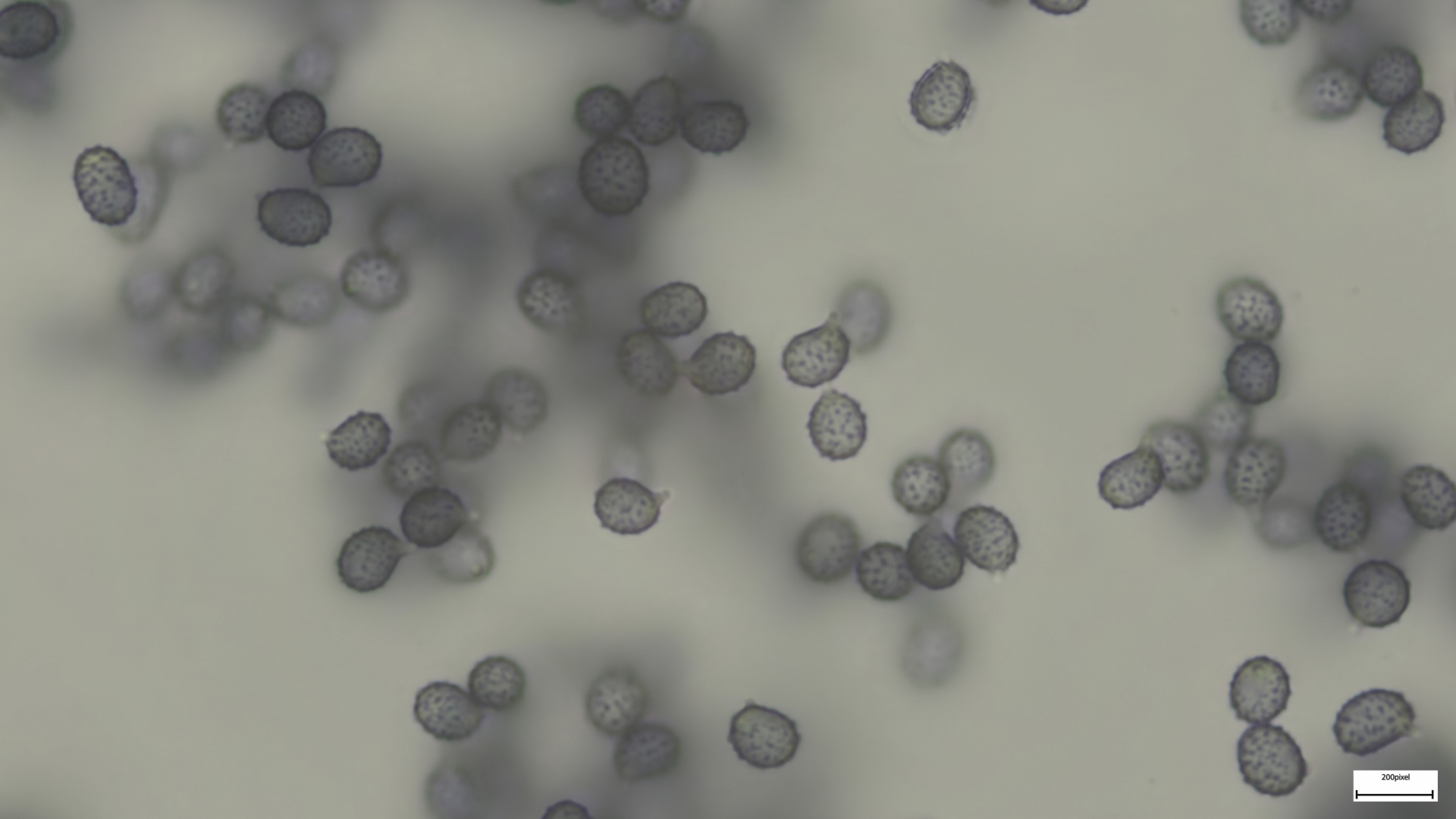 Die Sporen zeigen sich amyloid, netzig und haben eine Größe von 8,5x7,2, Stacheln von 1µm