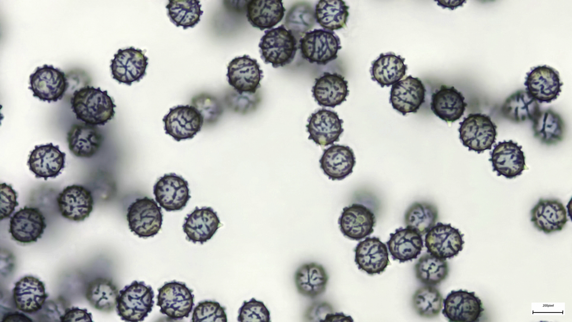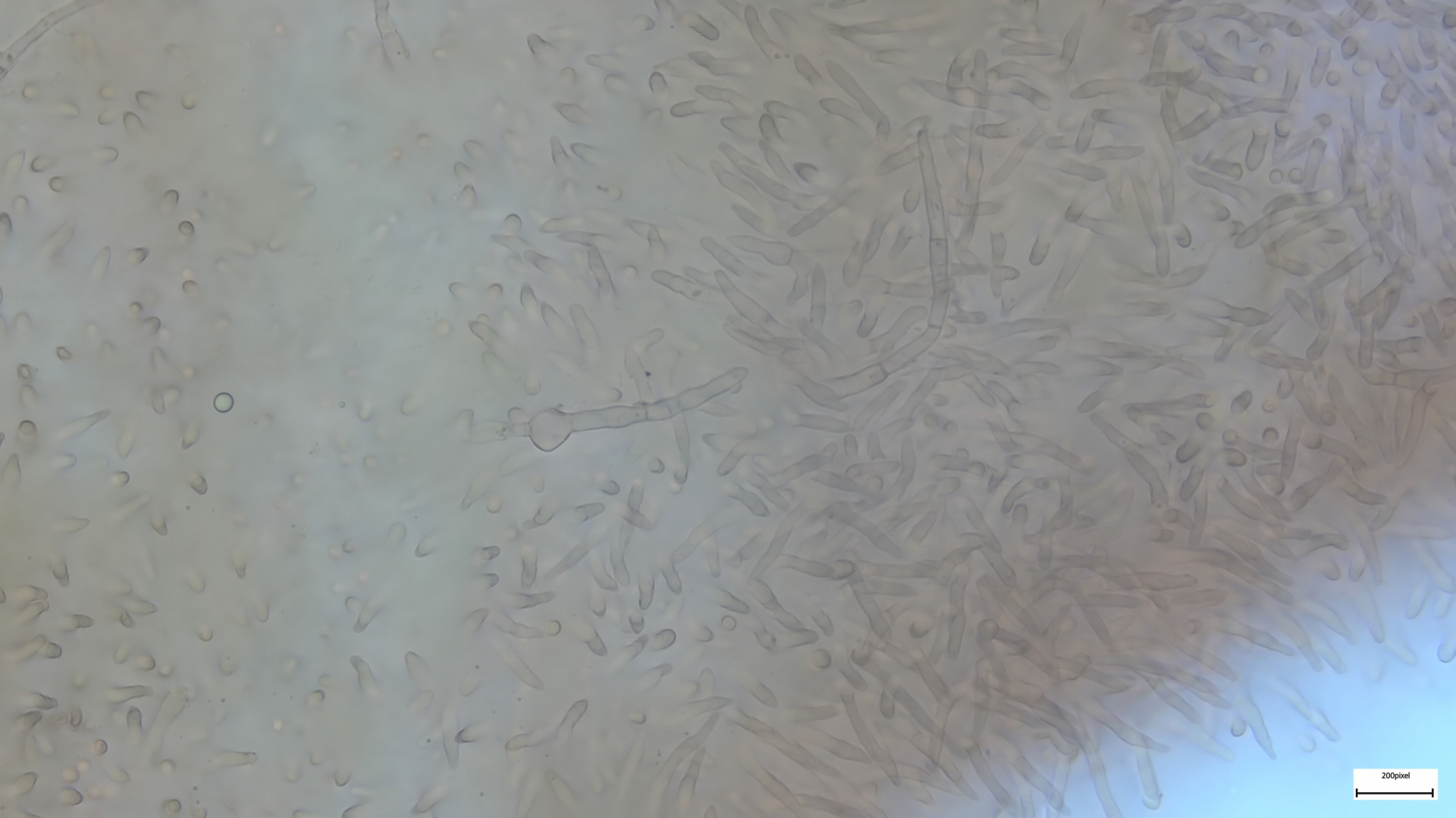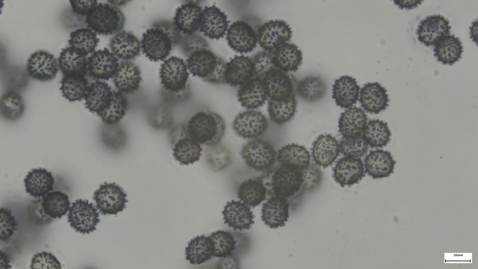 Die Sporen zeigen sich amyloid, netzig und haben eine Größe von 8,5x7,2, Stacheln von 1µm
