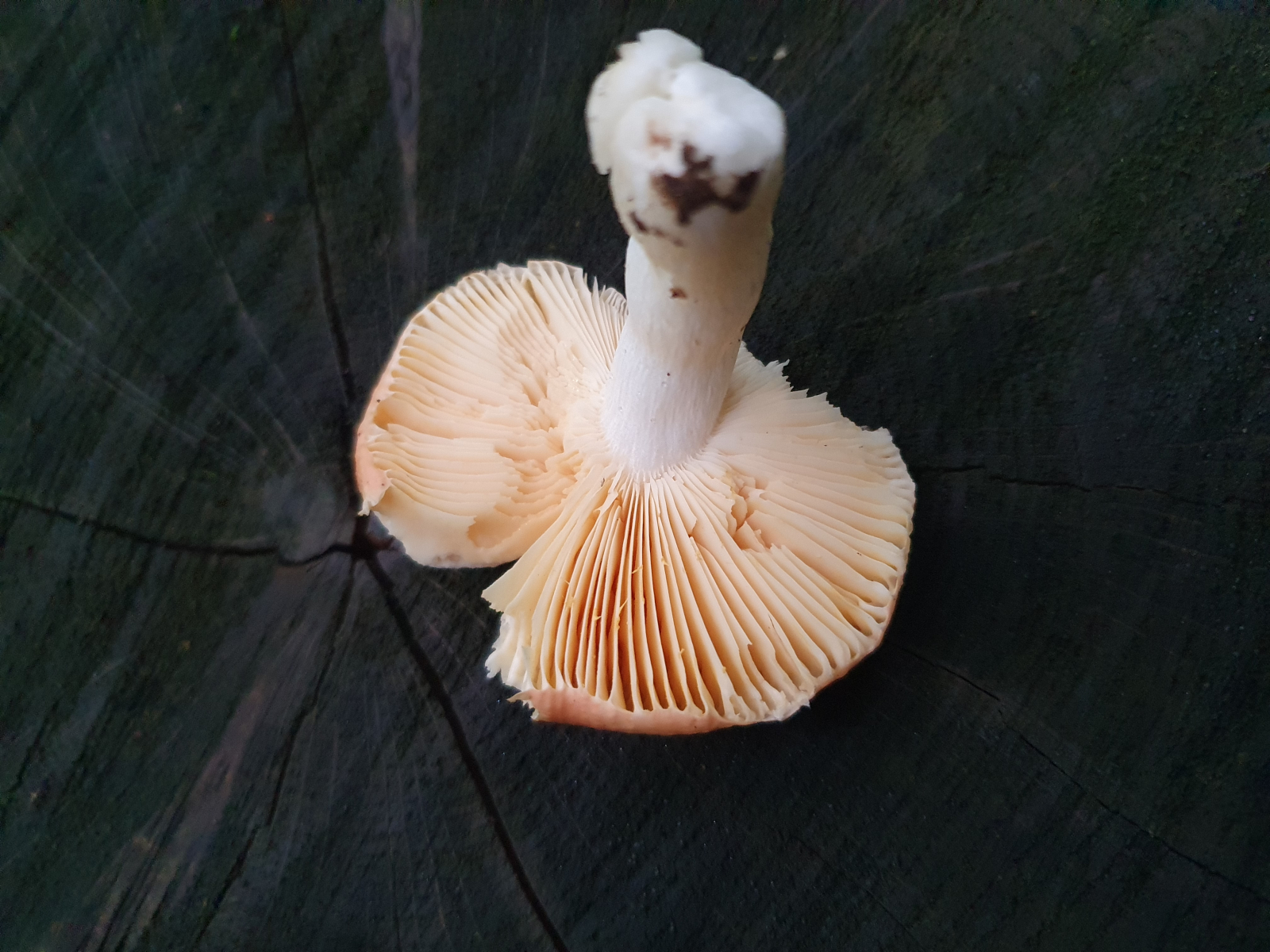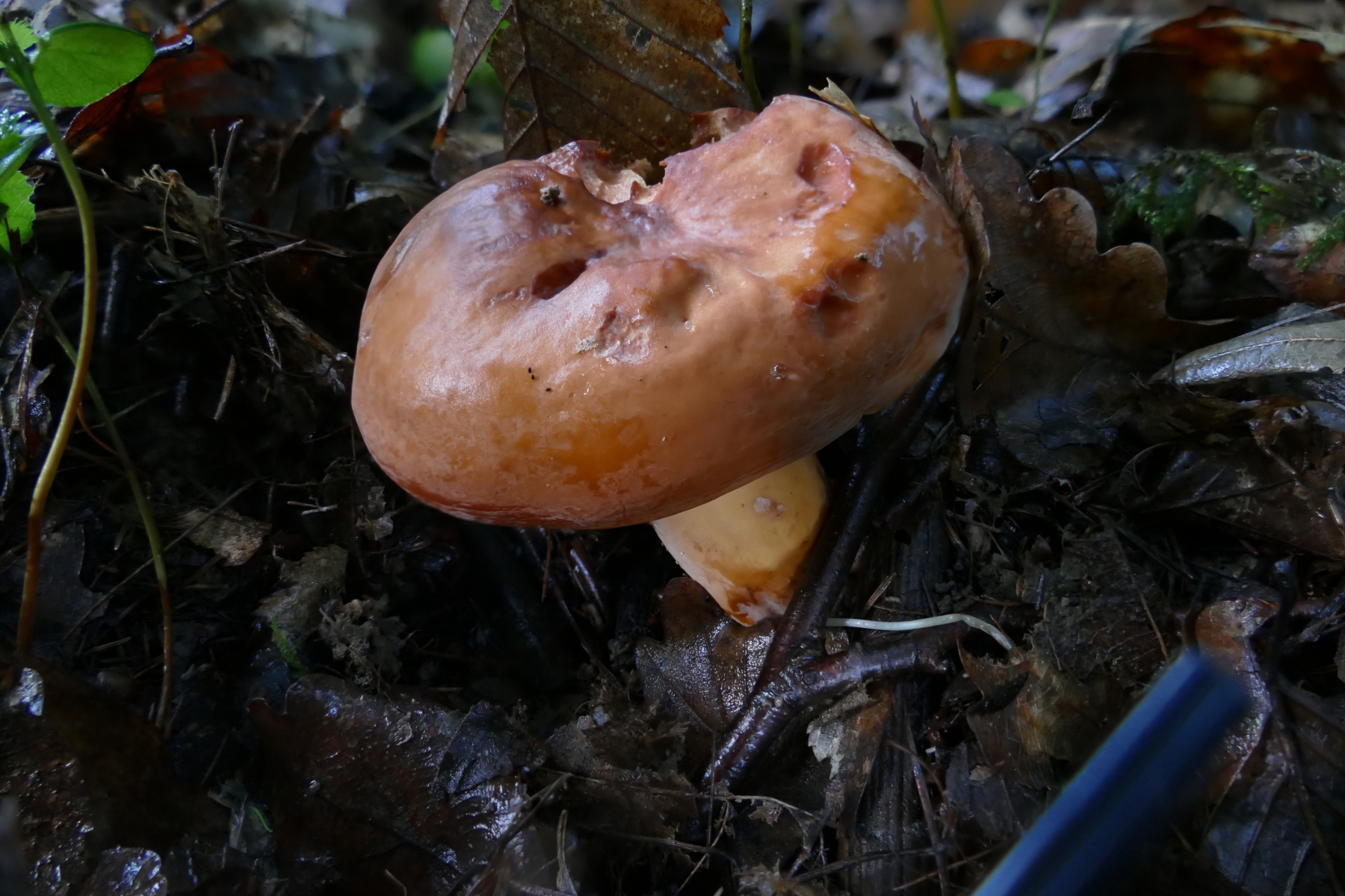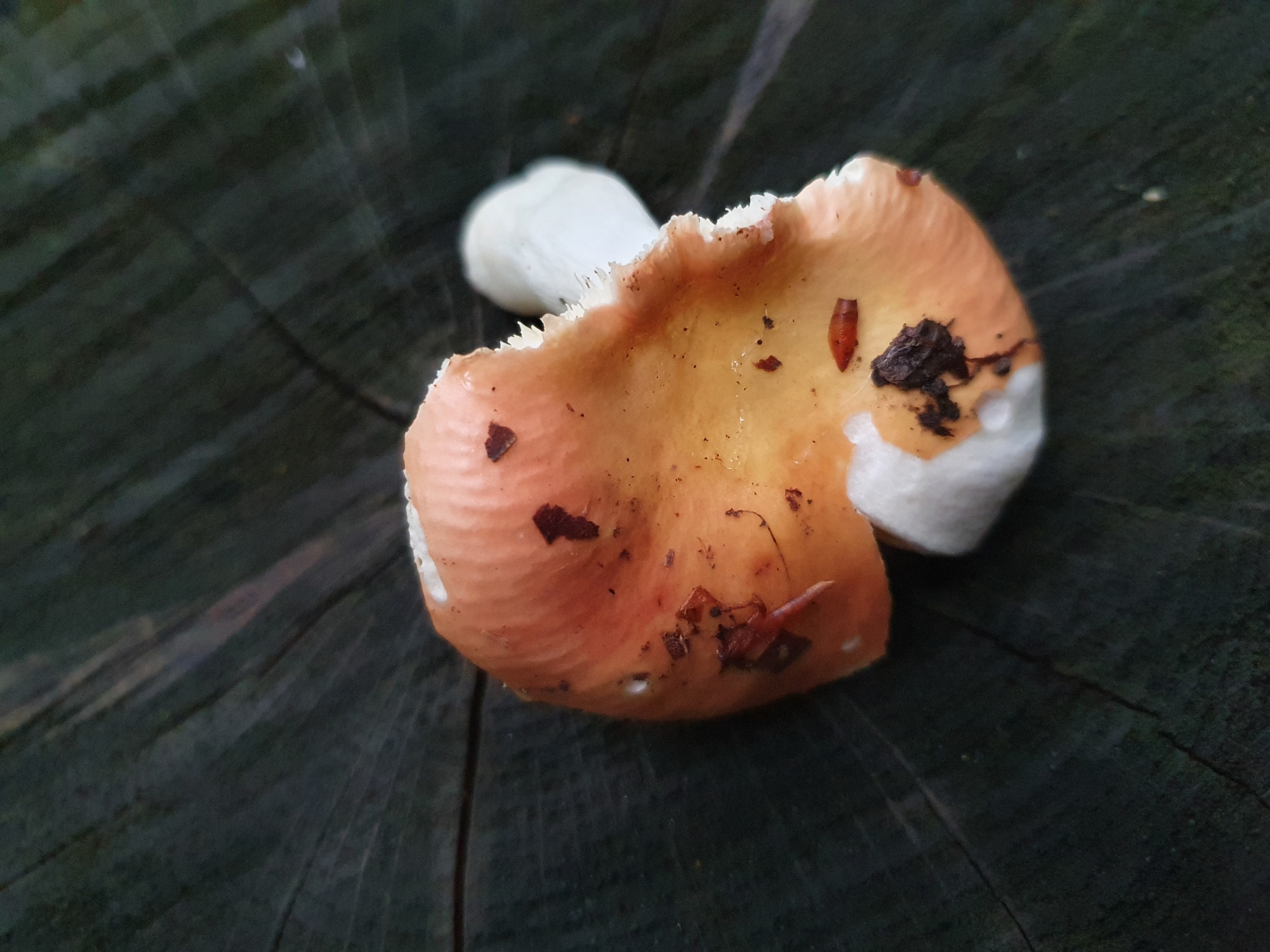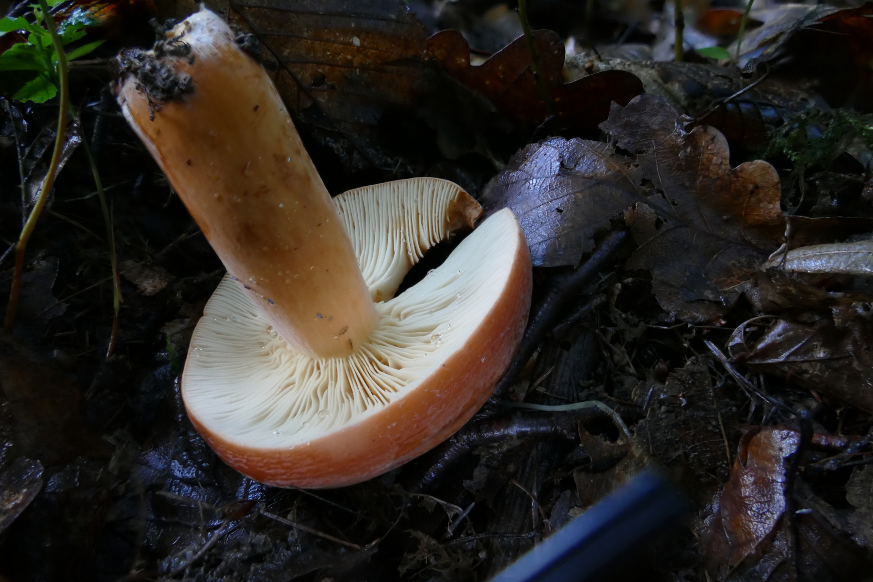 Beim nächsten bin ich mir sehr unsicher ... komme da zu Russula integra ... aber ich wähnte mich in einem reinen Hainbuchenwaldstück (muss da nochmal hin, ob da irgendwo etwas fichtiges steht?). Vielleicht aber auch etwas anderes. Jedenfalls mild im Geschmack.
