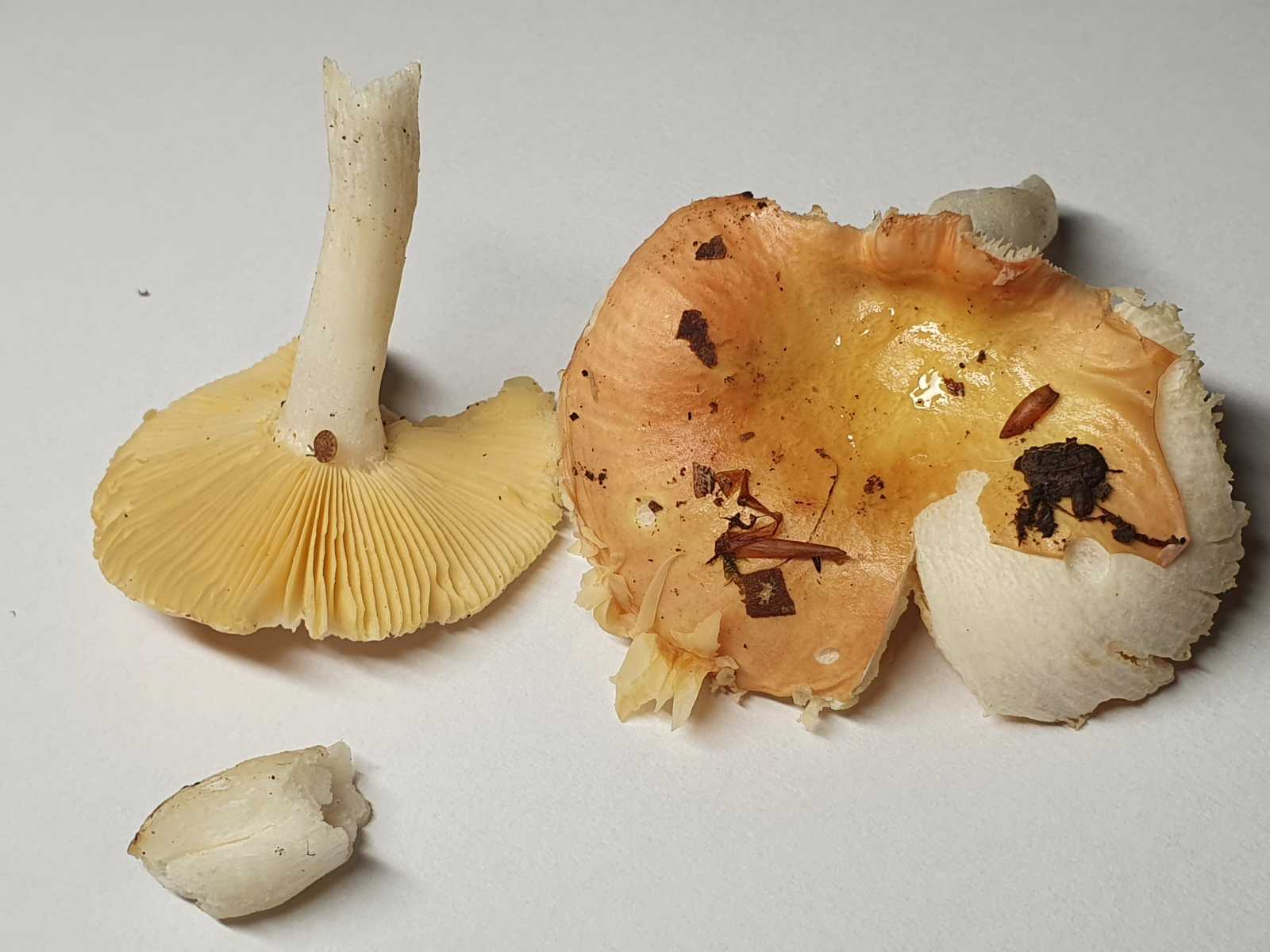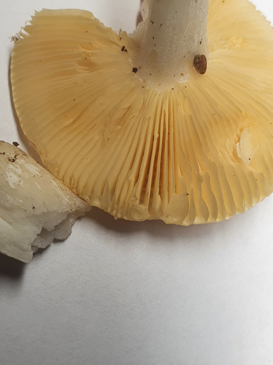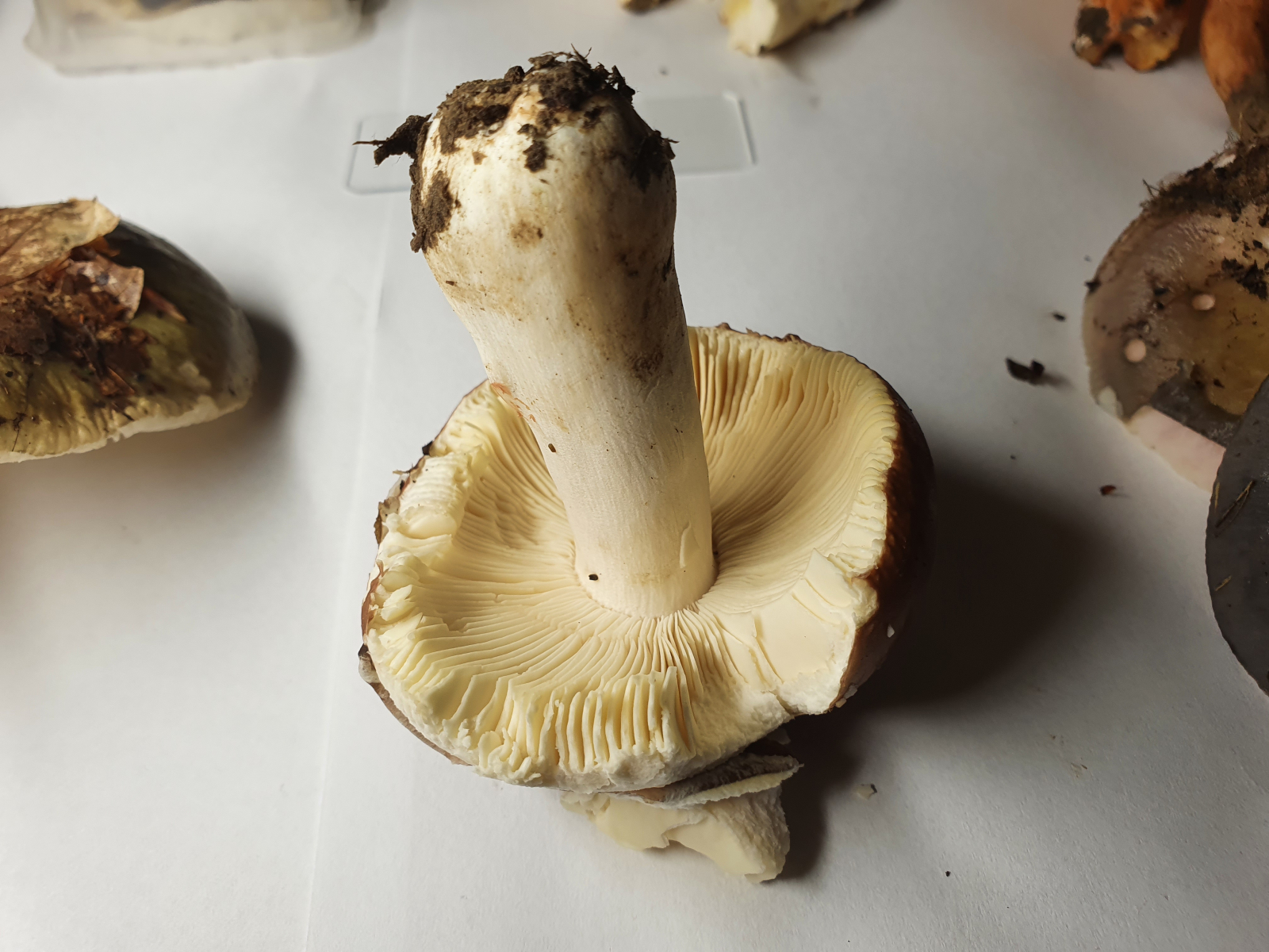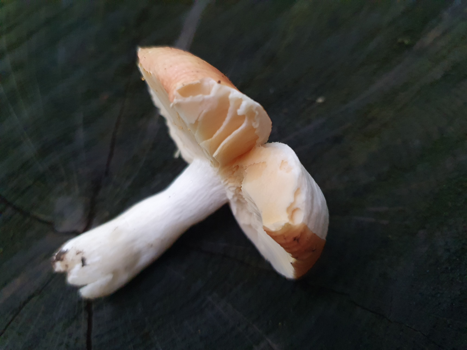 Beim nächsten bin ich mir sehr unsicher ... komme da zu Russula integra ... aber ich wähnte mich in einem reinen Hainbuchenwaldstück (muss da nochmal hin, ob da irgendwo etwas fichtiges steht?). Vielleicht aber auch etwas anderes. Jedenfalls mild im Geschmack.