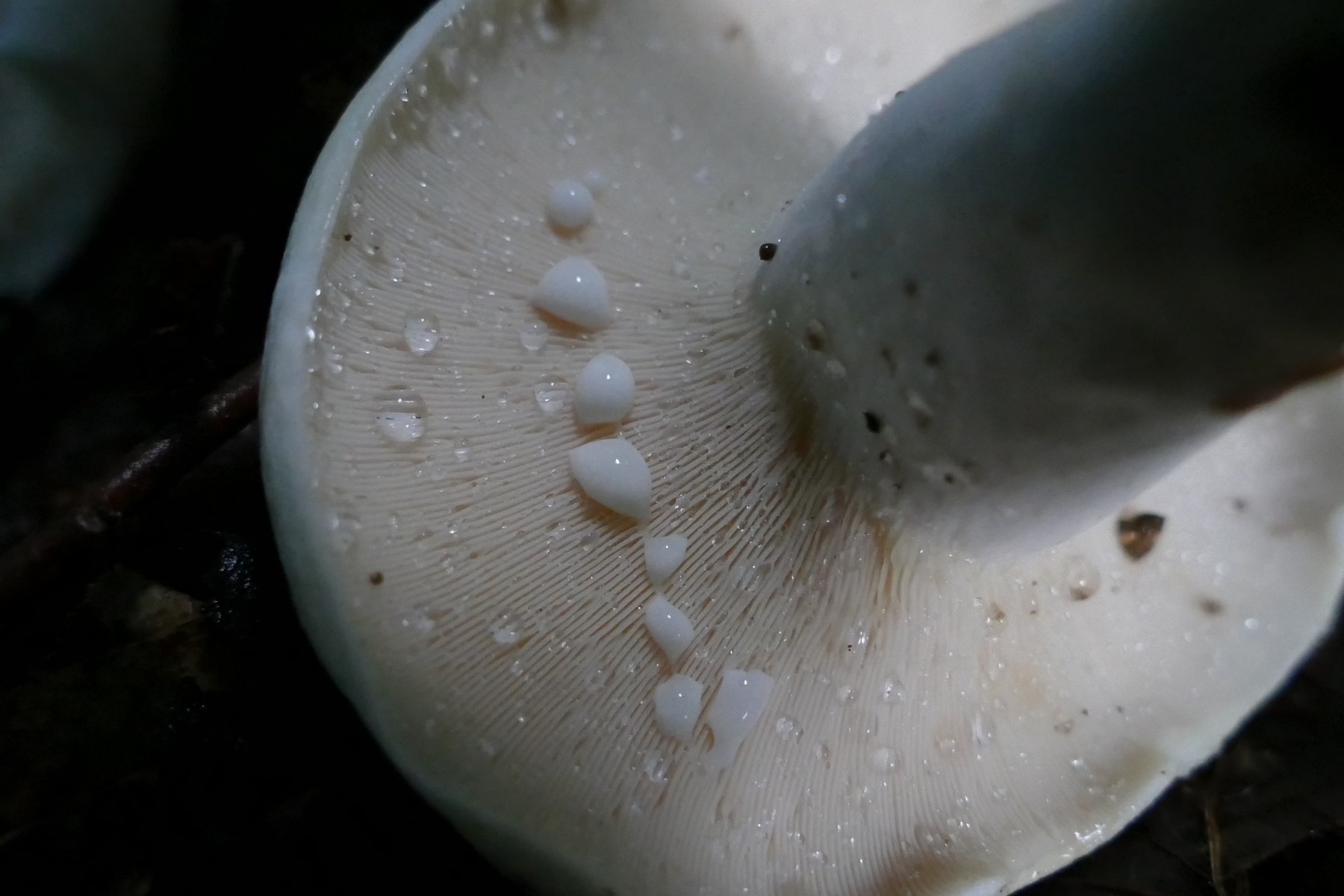 Weiter ging es mit einem mir bis dahin unbekannten. Da dieser in ziemlich räumlicher Nähe zu L.volemus wuchs dachte ich zunächst, als die jung kamen, das dies ein frühes Stadium des Milchlings sein könnte. Aber von den Farben passte das nicht, die APVler brachten mich dann auf die Spur: Lactarius piperatus - Der Pfeffermilchling (die Zungenspitze war nach dem Test erstmal kurz taub):