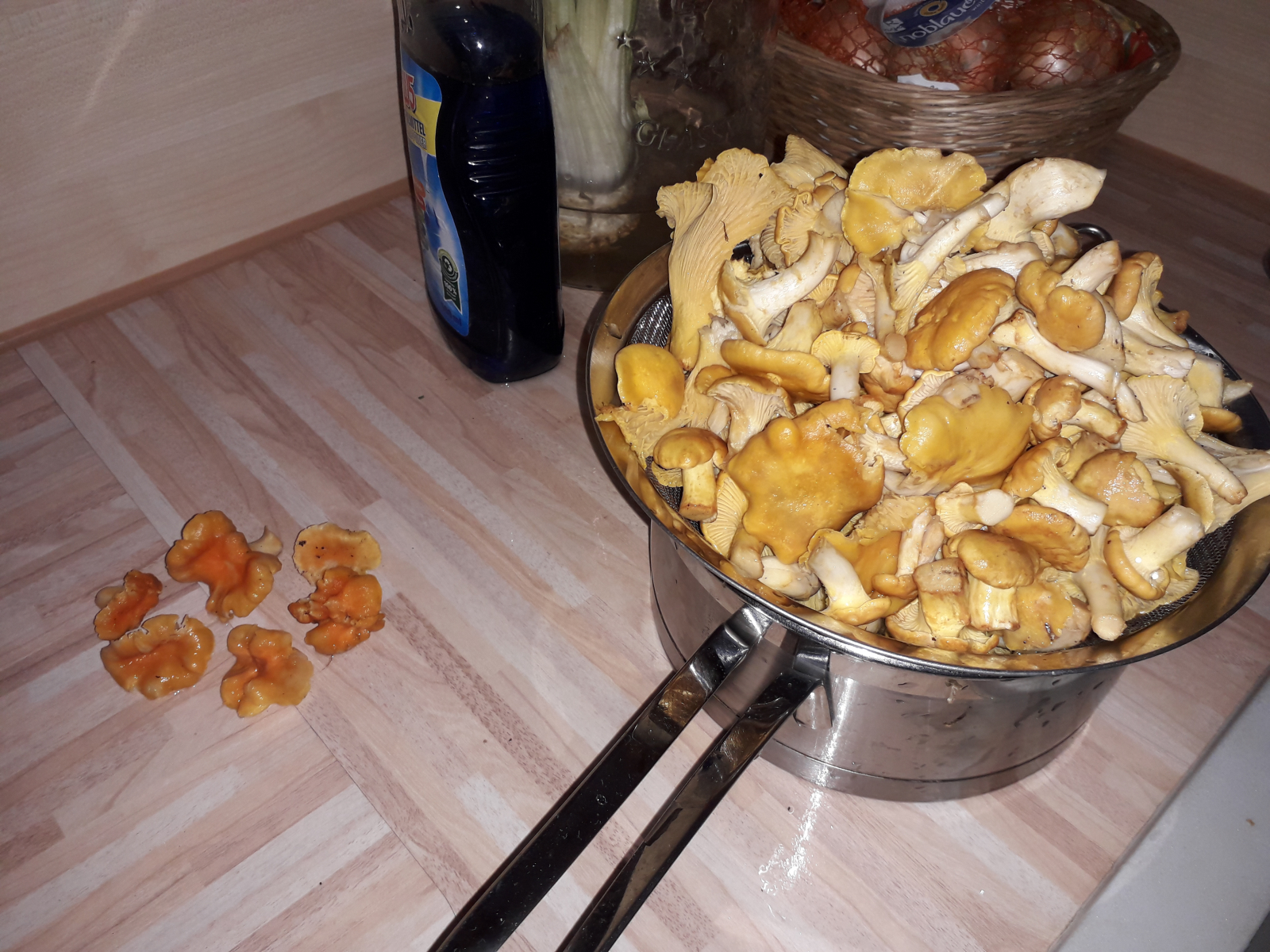 Und ich wohne am Schwarzwaldrand, wo zumindest in der Nähe die Pfifferlinge nicht so dicht gesät sind und ich die meist im Laub suchen muss. Manchmal bleibt es nach 2 Stunden bei einer Handvoll oder auch leerem Korb.