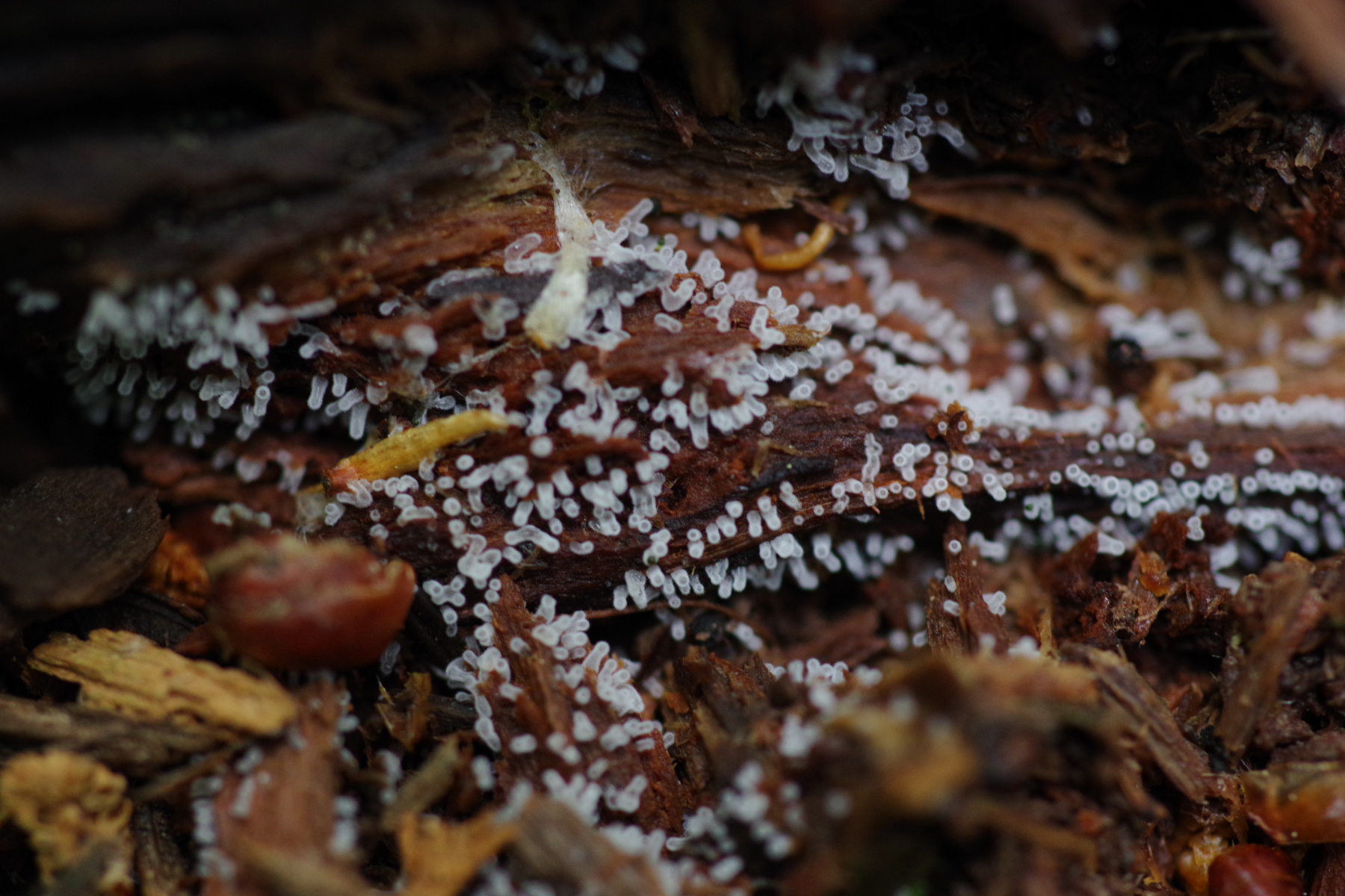1) wenn es eine elektronenmikroskopische Aufnahme wäre, würde man dies ganz im Trend als Krönchen-Virus, womöglich in der Omikron-Super-Plus-Variante, ansehen. Ist aber nur ein Makrofoto, das Zeug wächst auf umgefallener, ziemlich morscher Grauerle in eher untypischem Biotop für Grauerle.