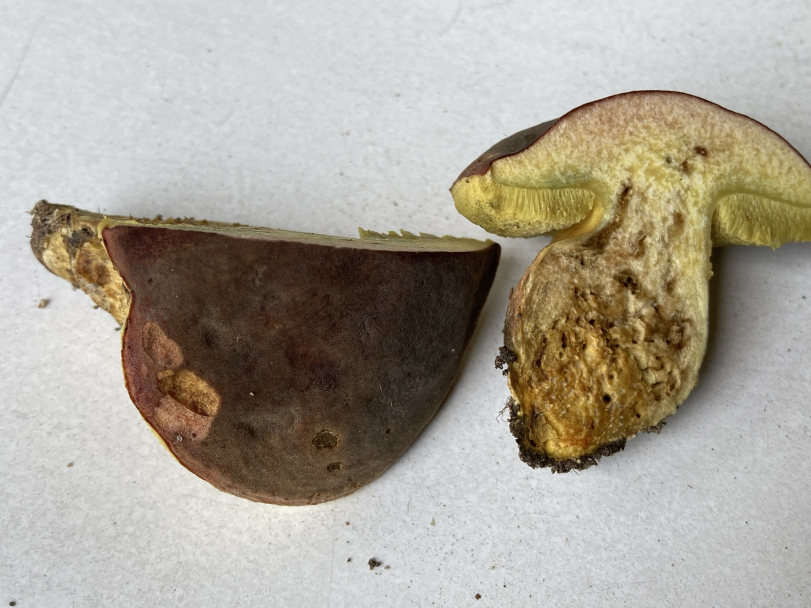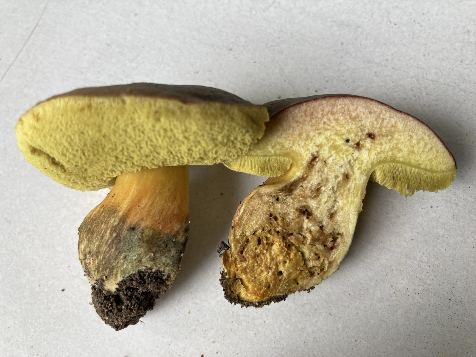 #7 Hier vermute ich den Eichenfilzröhrling Hortiboletus engelii als Eichenbegleiter, auch wenn komisch bauchig gewachsen.