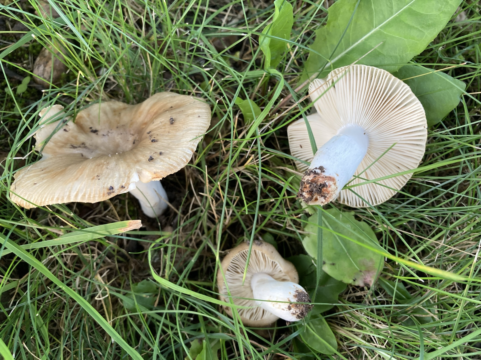 #2 Verblassende Birken-Täublinge Russula exalbicans - Ockersporer und Birkenbegleiter mit Anfangs mäßig scharfen Geschmack, der beim Kauen rasch nachlässt. Bei alten Exemplaren graut erstaunlich deutlich die Stielrinde.