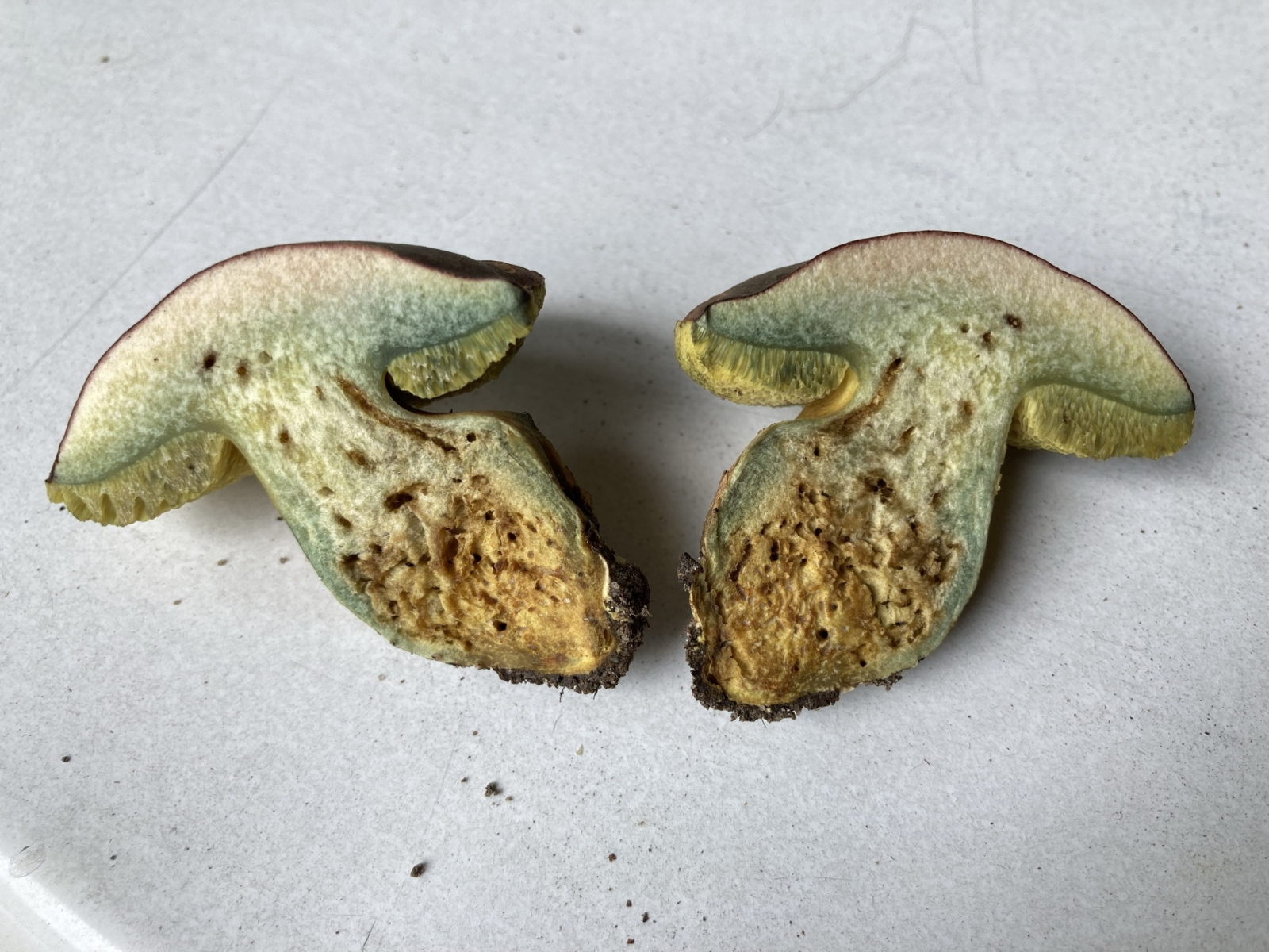 #7 Hier vermute ich den Eichenfilzröhrling Hortiboletus engelii als Eichenbegleiter, auch wenn komisch bauchig gewachsen.
