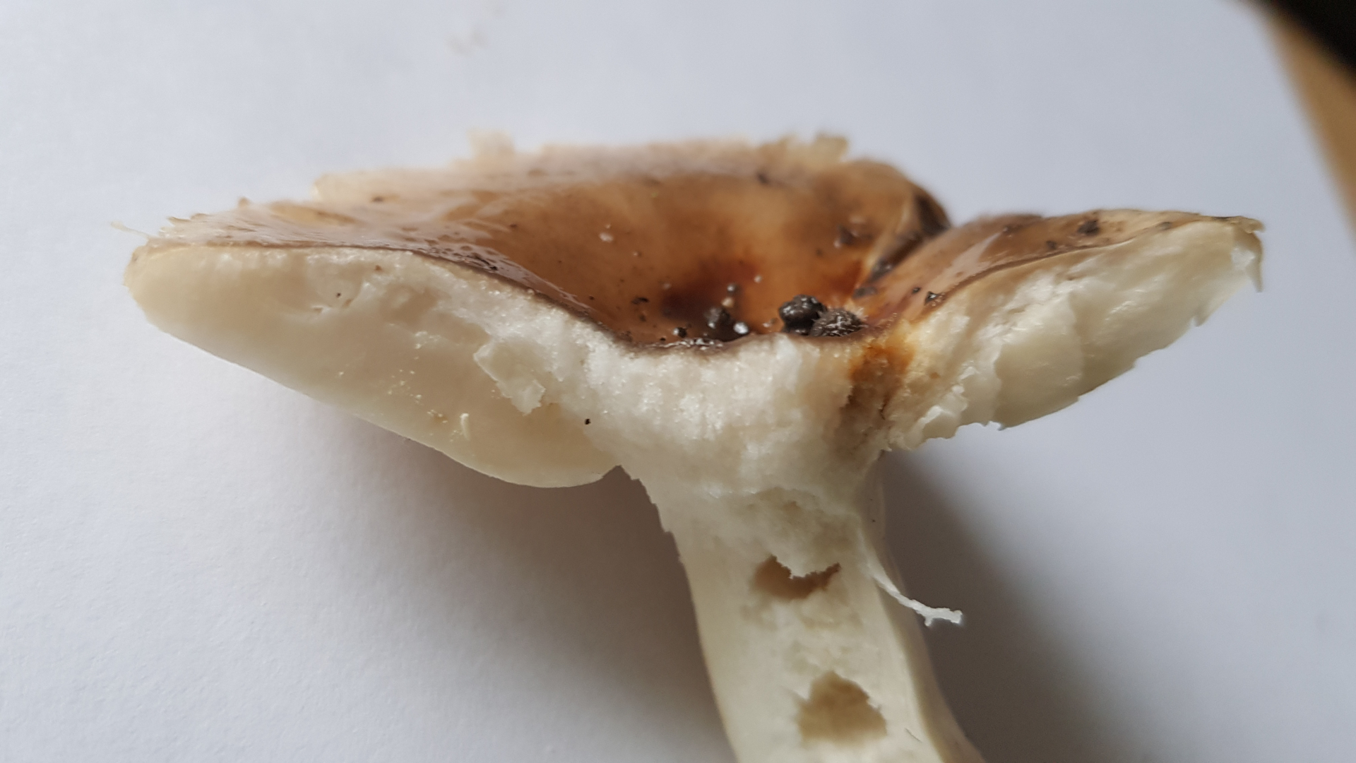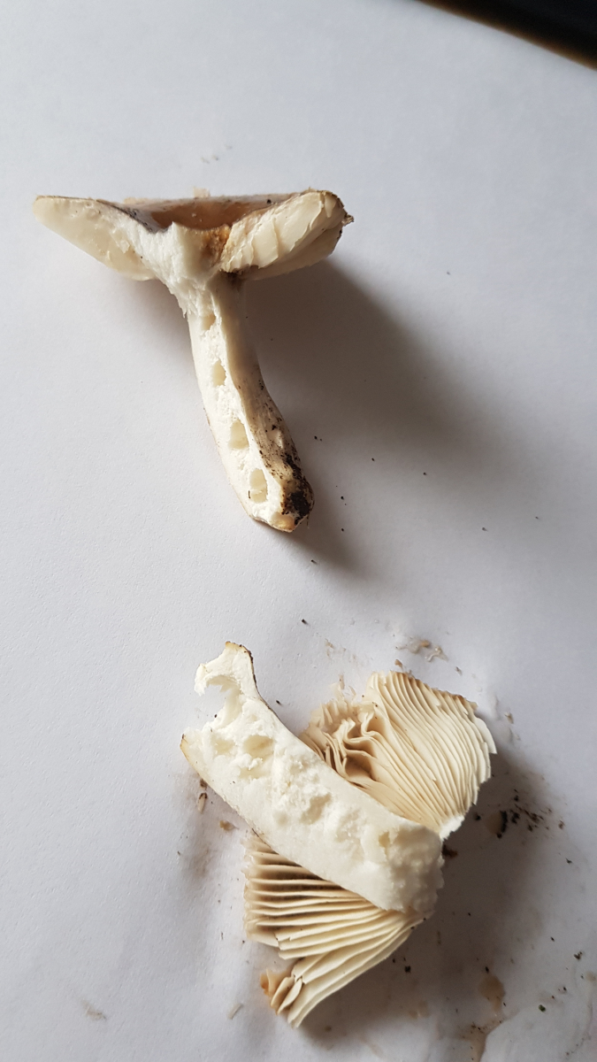 Lamellen und Stiel weißlich