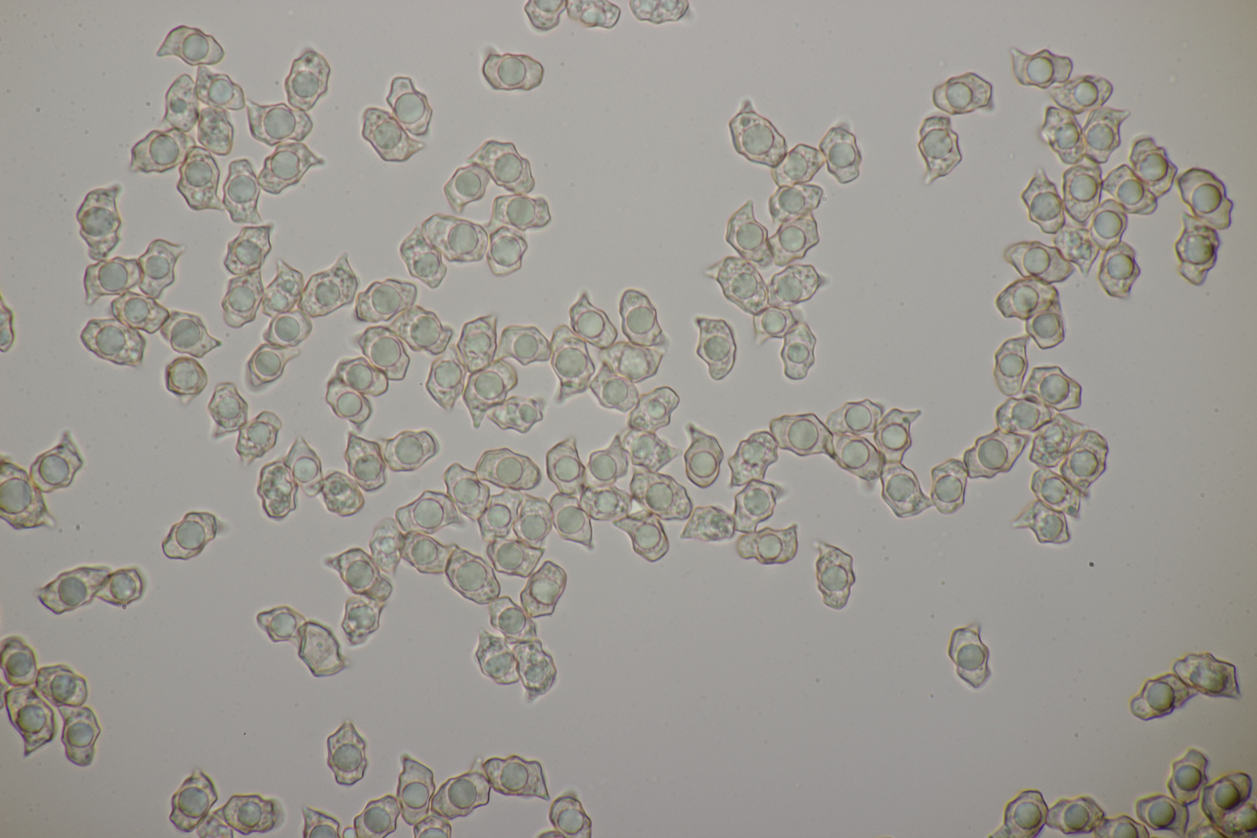 Deine wieder beneidenswert guten Mikroaufnahmen entsprechen genau meinem Fund. Tropfenverteilung in den Sporen und stark