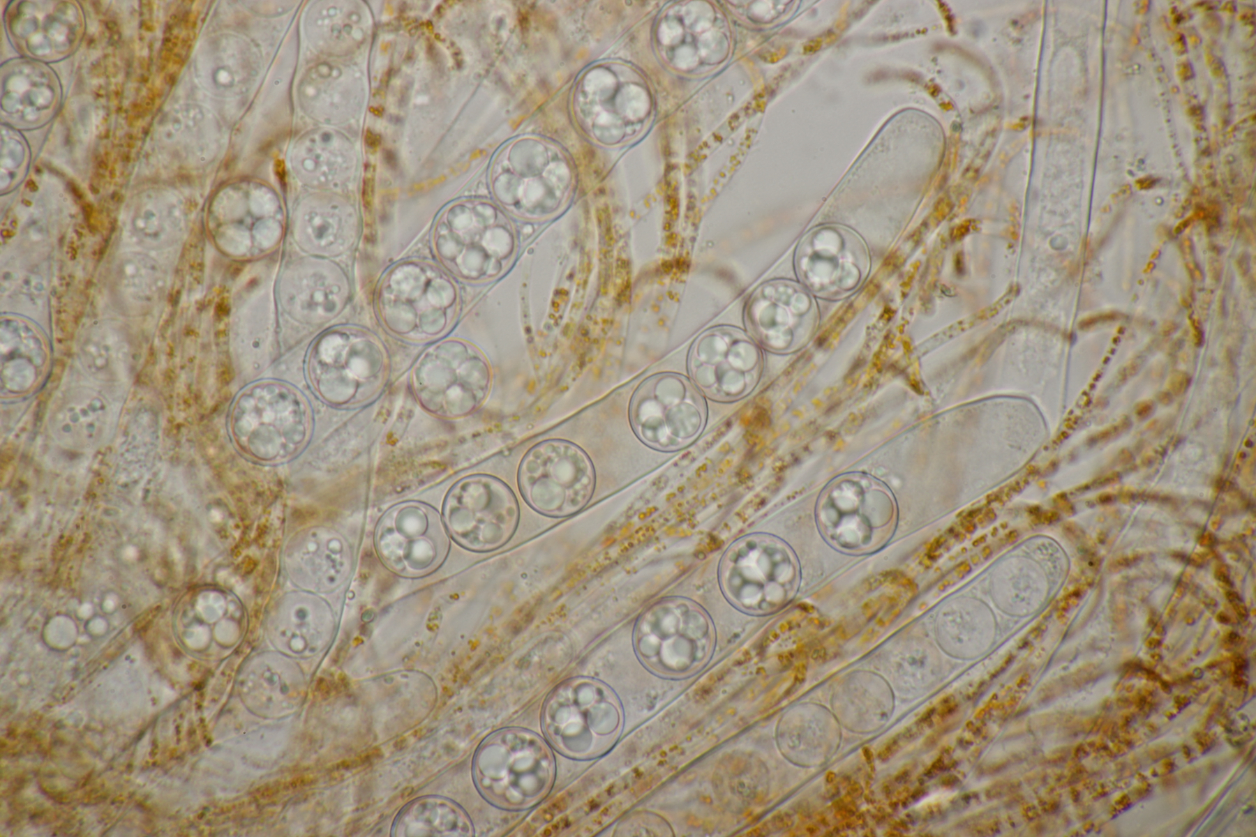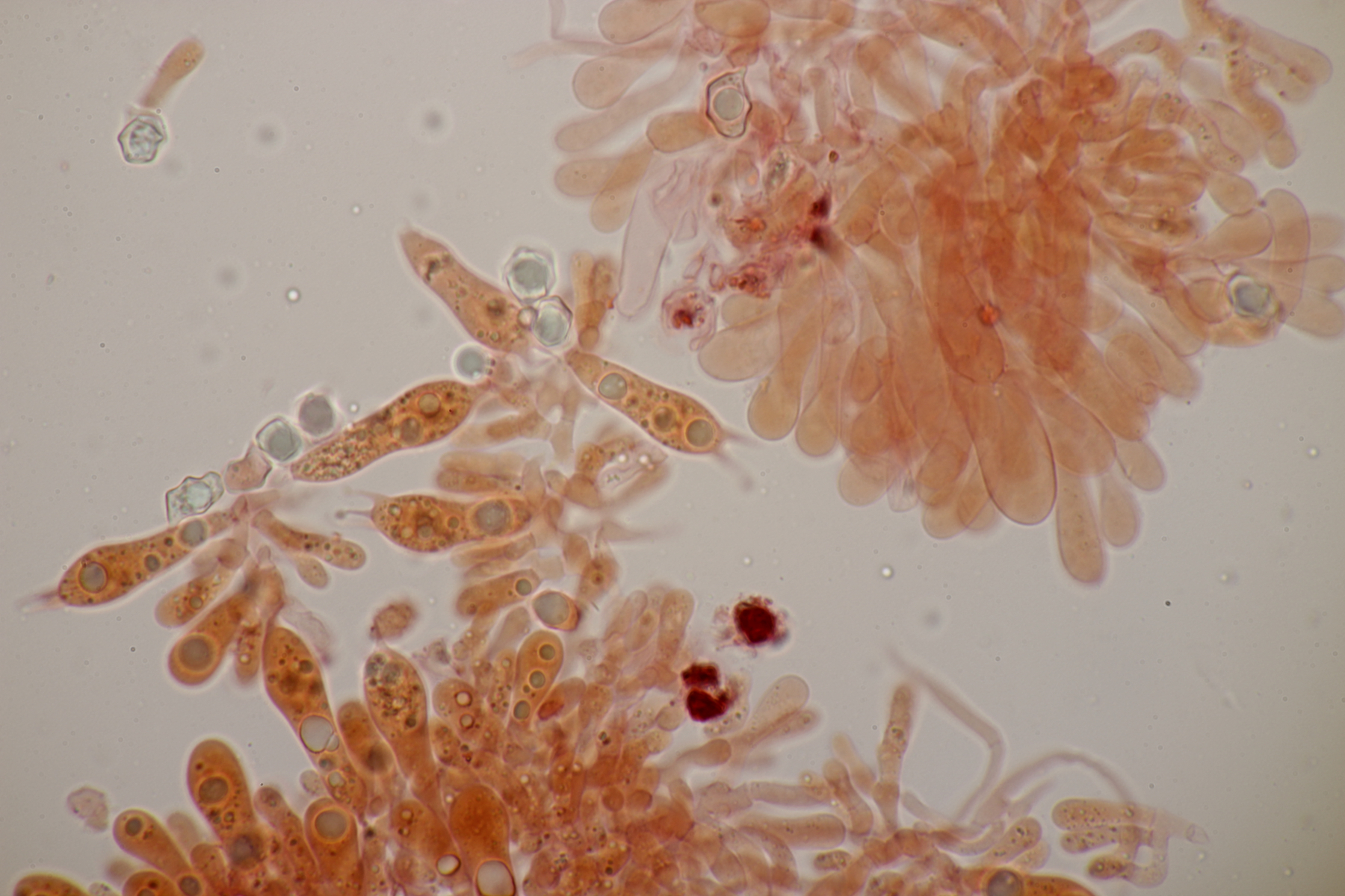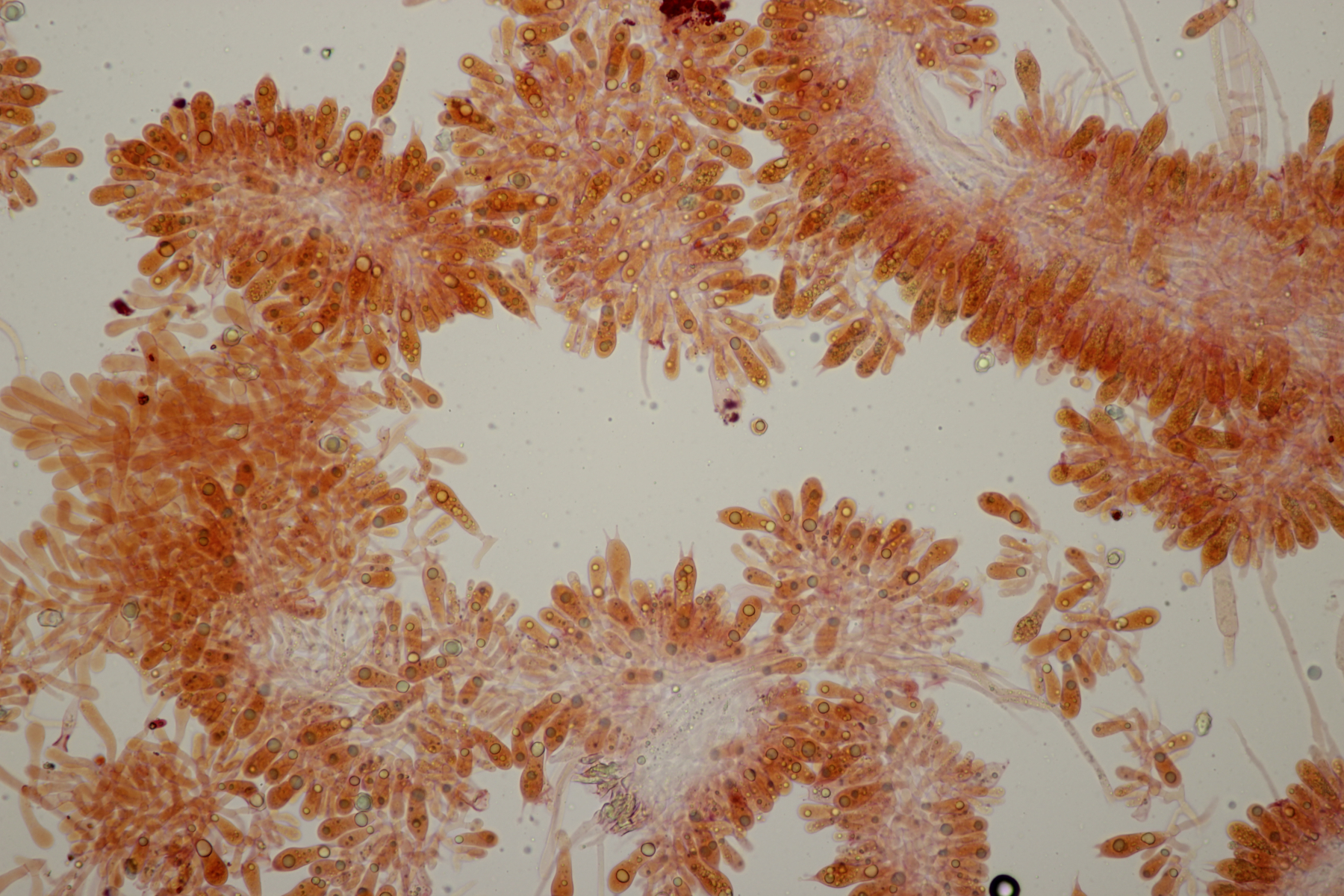Ähnlich wie auf Deinen tollen Mikrobildern war der Anteil an zweisporigen Basidien augenscheinlich größer als der Anteil von viersporigen