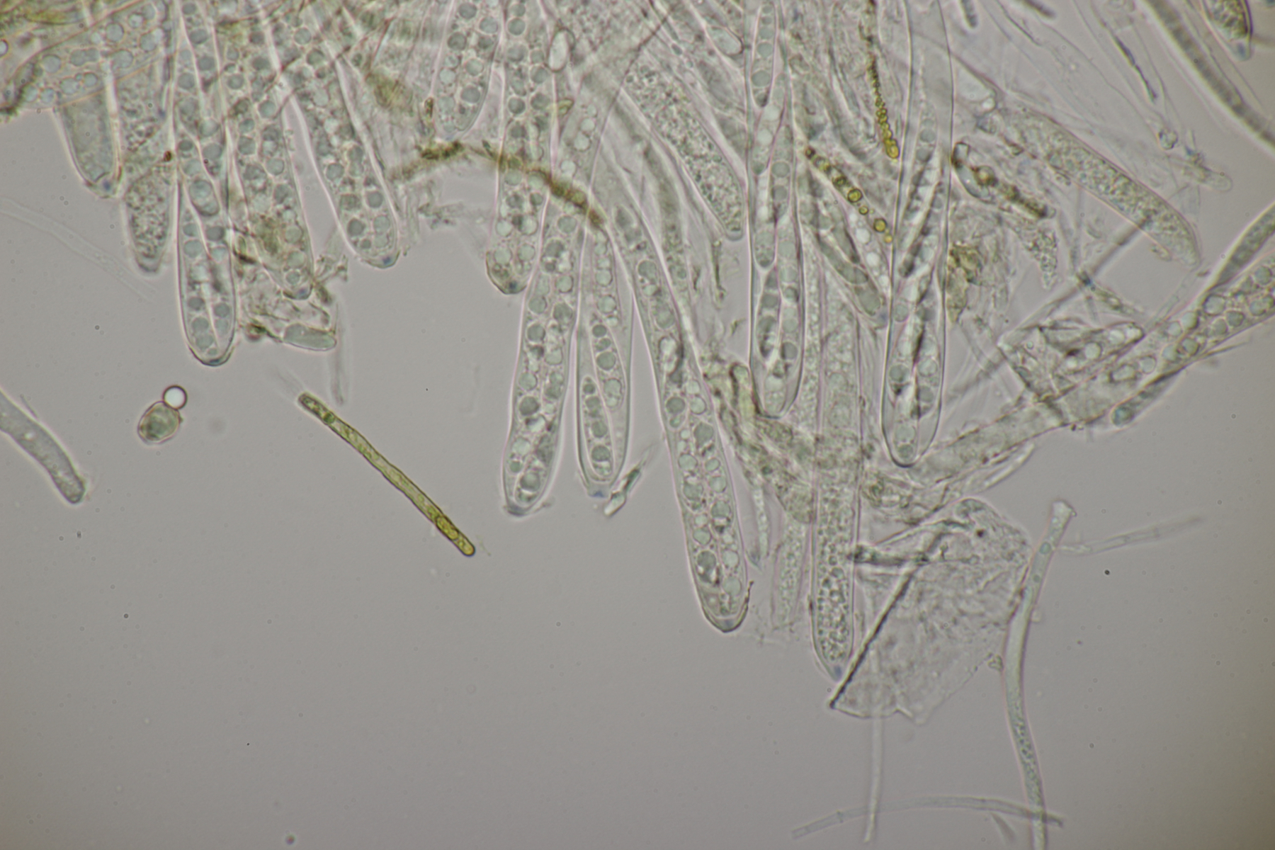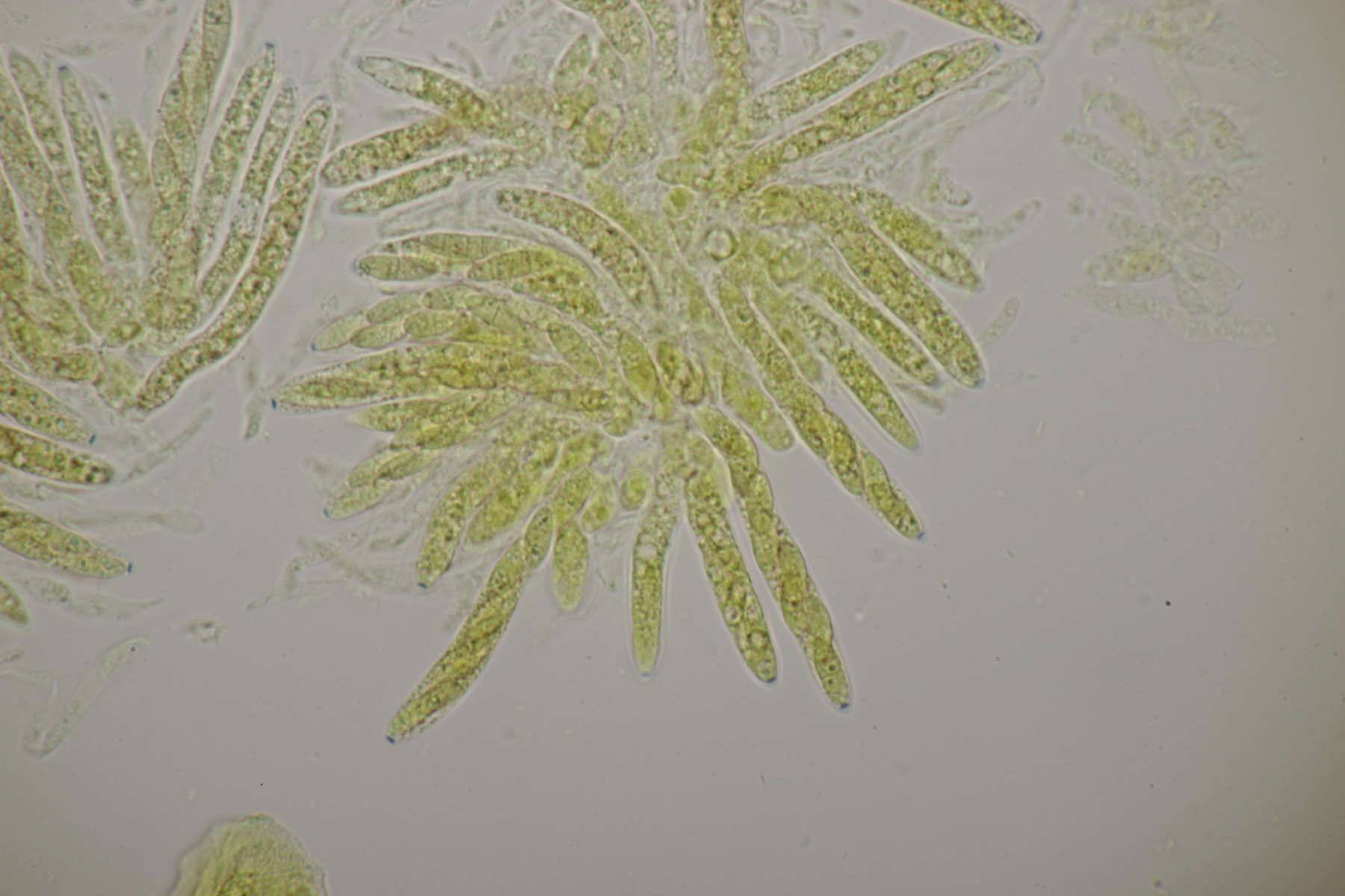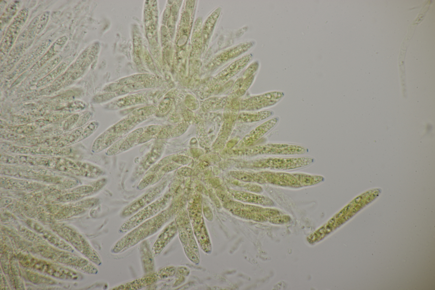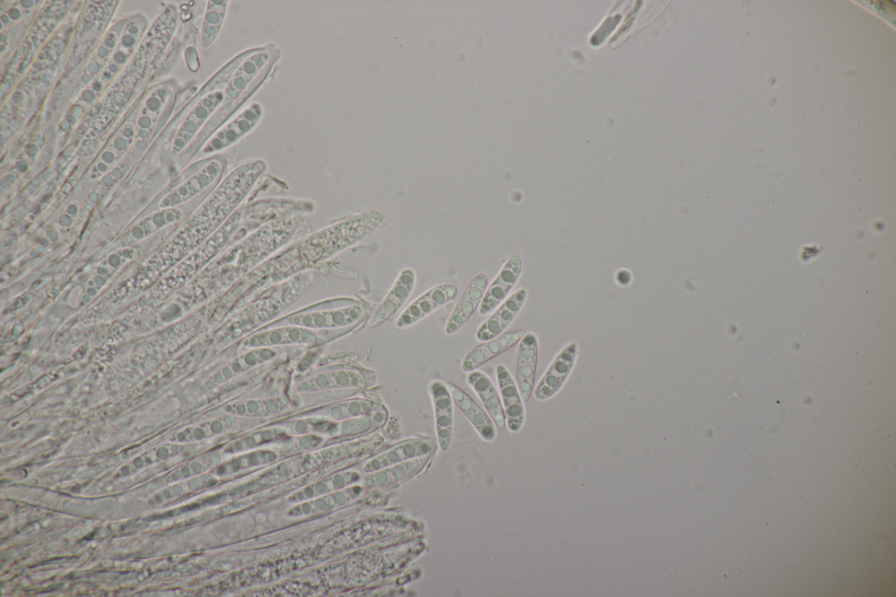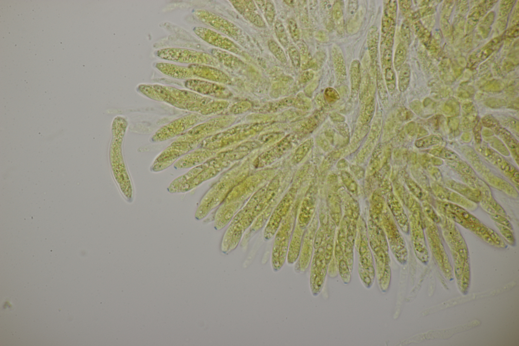 12. Diese gelben Becher hatten im Feld meine Aufmerksamkeit erregt. Ich hatte ja zunächst auf eine Ramsbottomia gehofft, aber die Sporen brachten Ernüchterung: Pulvinula. Sporenmaße von 13.5-14 µm passen erstmal nicht zu P. constellatio, aber vllt müssen die Fruchtkörper auch einfach noch etwas nachreifen. Die Art scheint es nämlich durchaus auch in gelb statt dem üblichen zinnoberrot zu geben.
