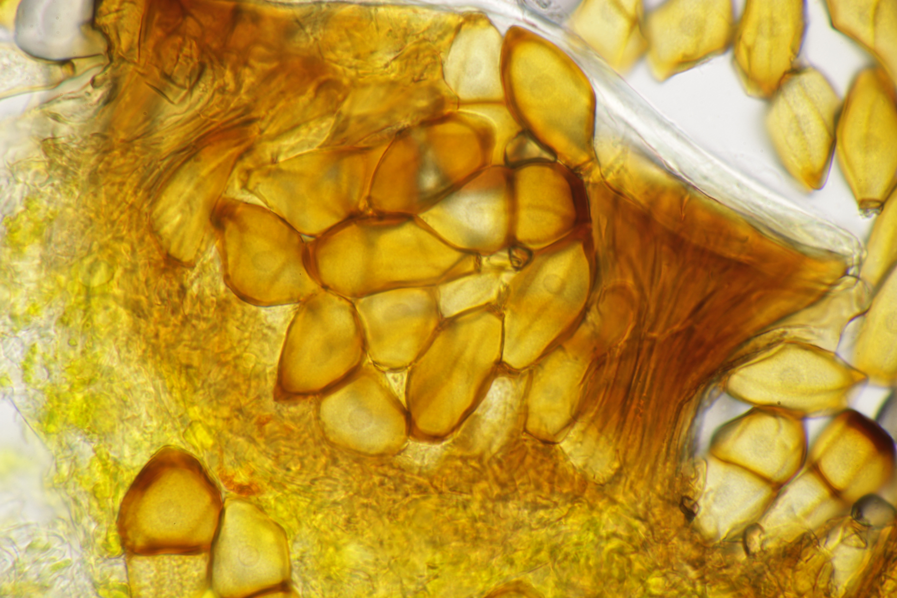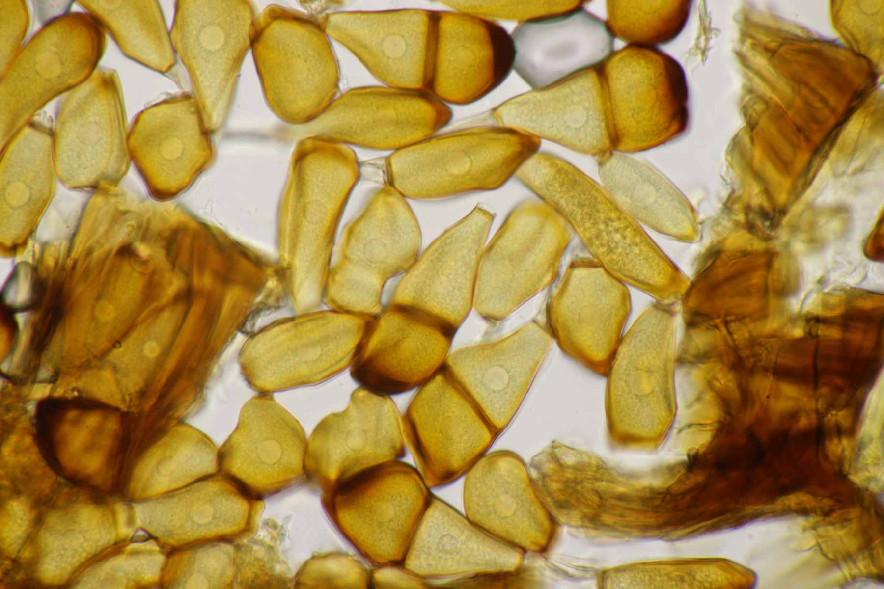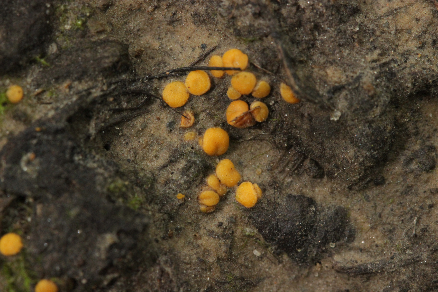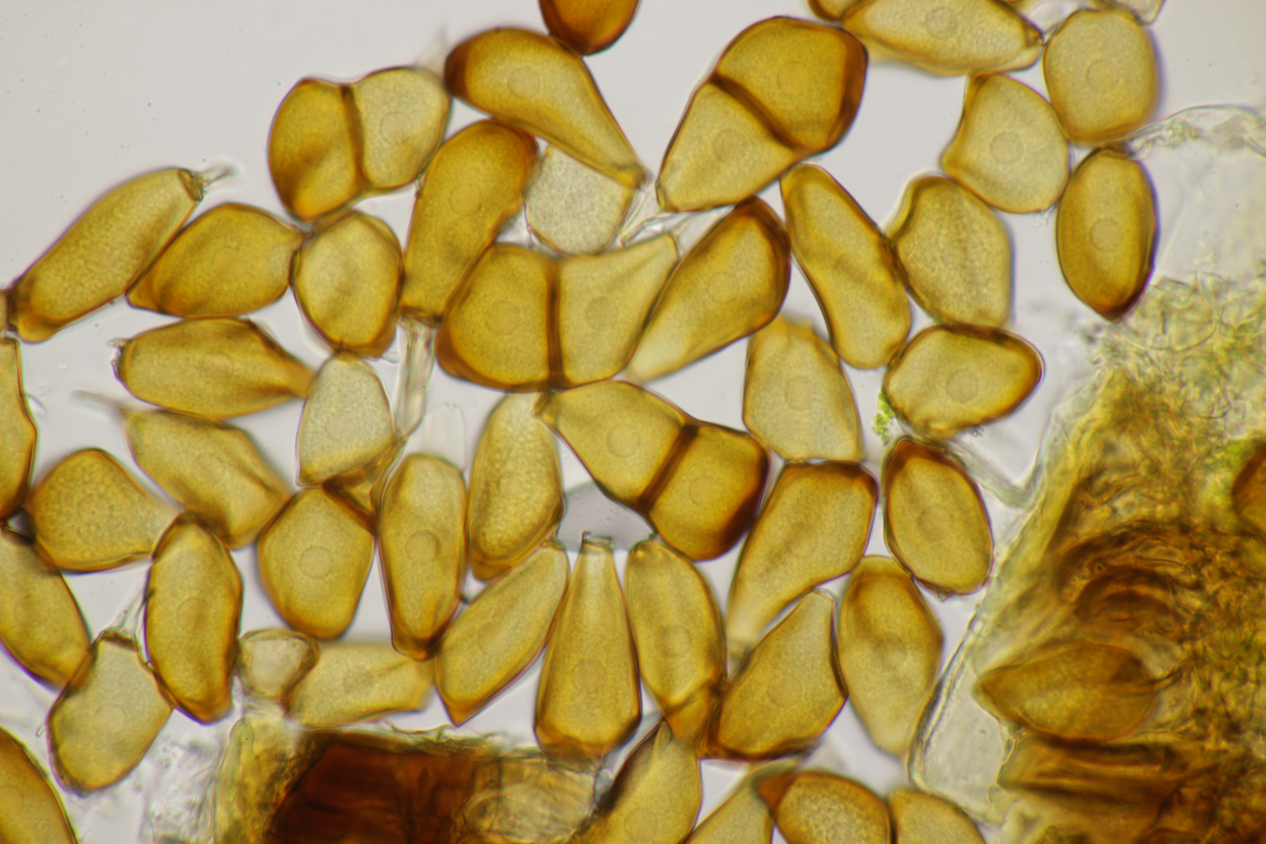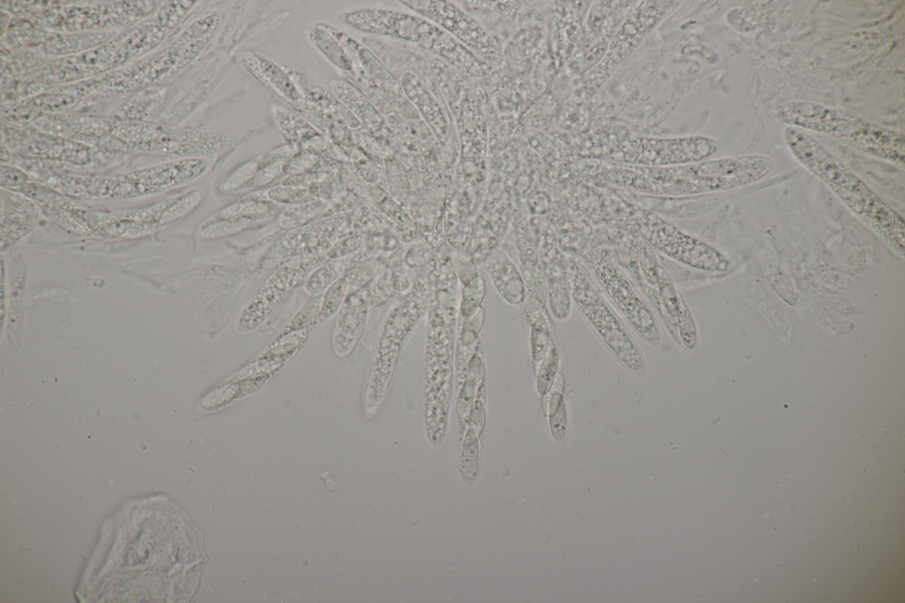 12. Diese gelben Becher hatten im Feld meine Aufmerksamkeit erregt. Ich hatte ja zunächst auf eine Ramsbottomia gehofft, aber die Sporen brachten Ernüchterung: Pulvinula. Sporenmaße von 13.5-14 µm passen erstmal nicht zu P. constellatio, aber vllt müssen die Fruchtkörper auch einfach noch etwas nachreifen. Die Art scheint es nämlich durchaus auch in gelb statt dem üblichen zinnoberrot zu geben.