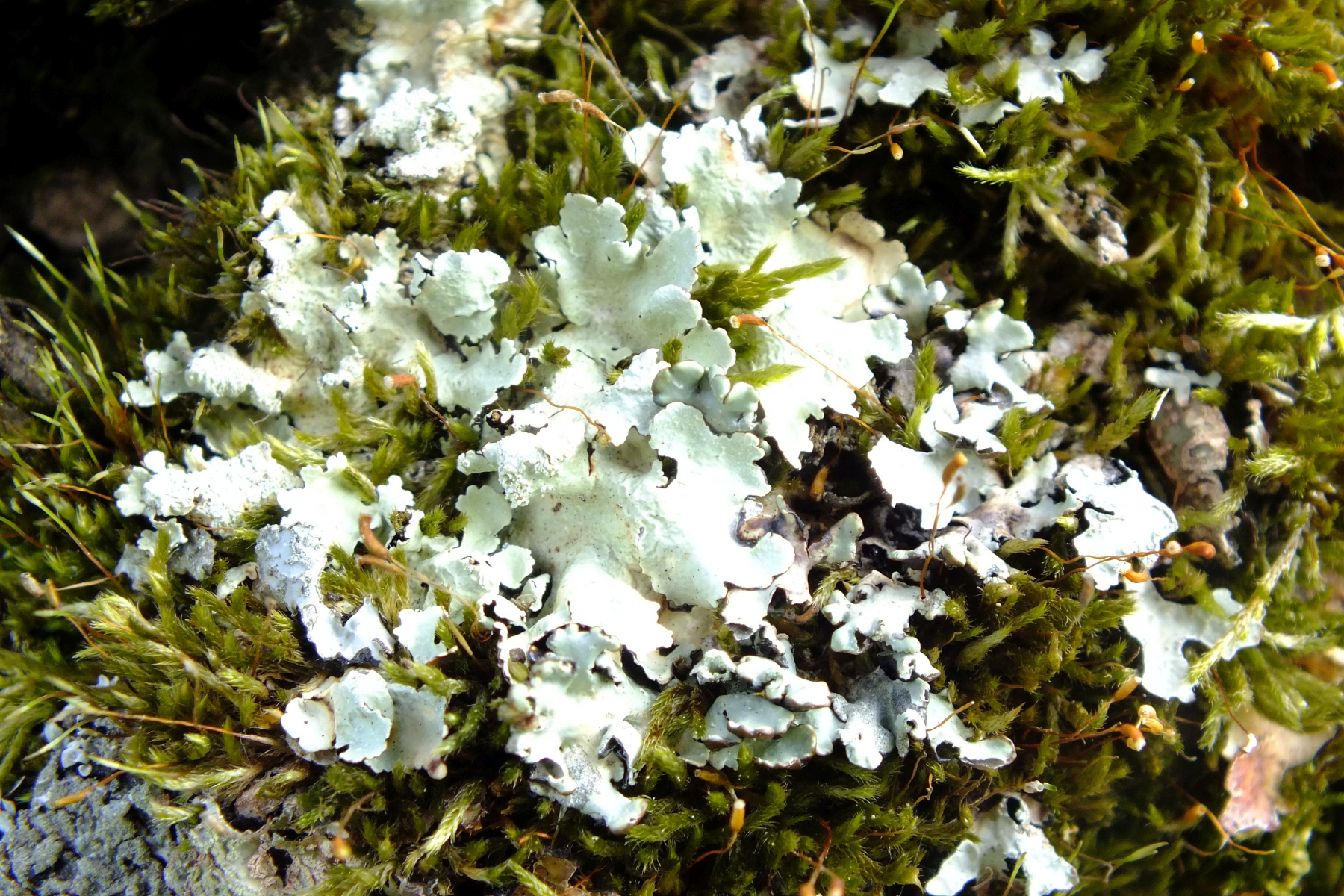 Kann jemand diese moosbewachsende Blattflechte aus Bild 4 irgendwie einordnen?