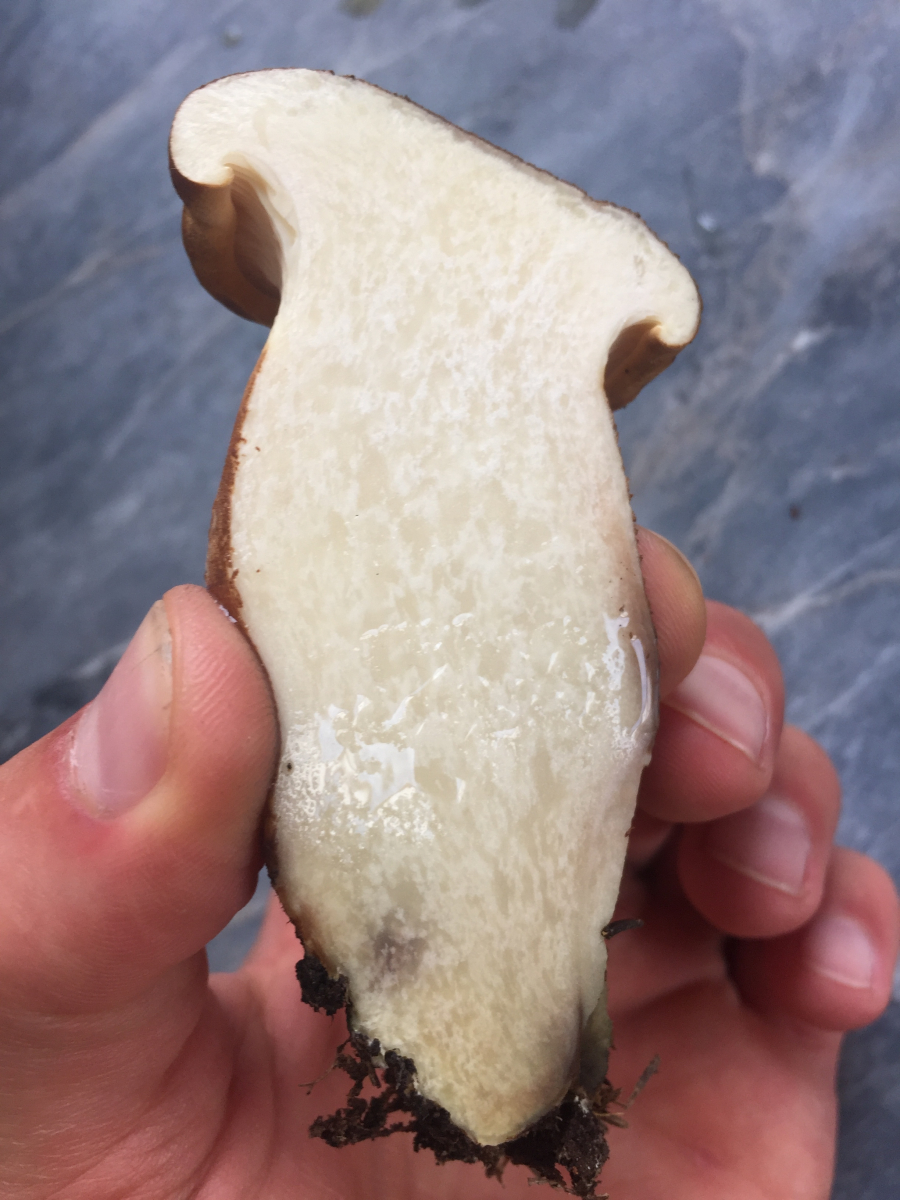 Und ein Brätling ist ein Milchling, da kann man den Stiel einmal quer durchbrechen, ohne daß das irgendwo an der Bruchstelle längsfaserig aussieht.