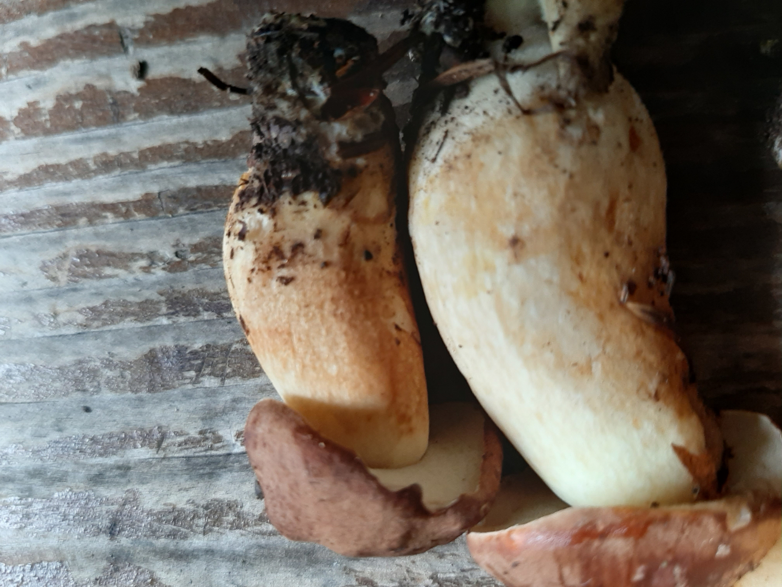 Stiel weiß mit braunen Stellen, Röhren weiß und im Alter gelb.