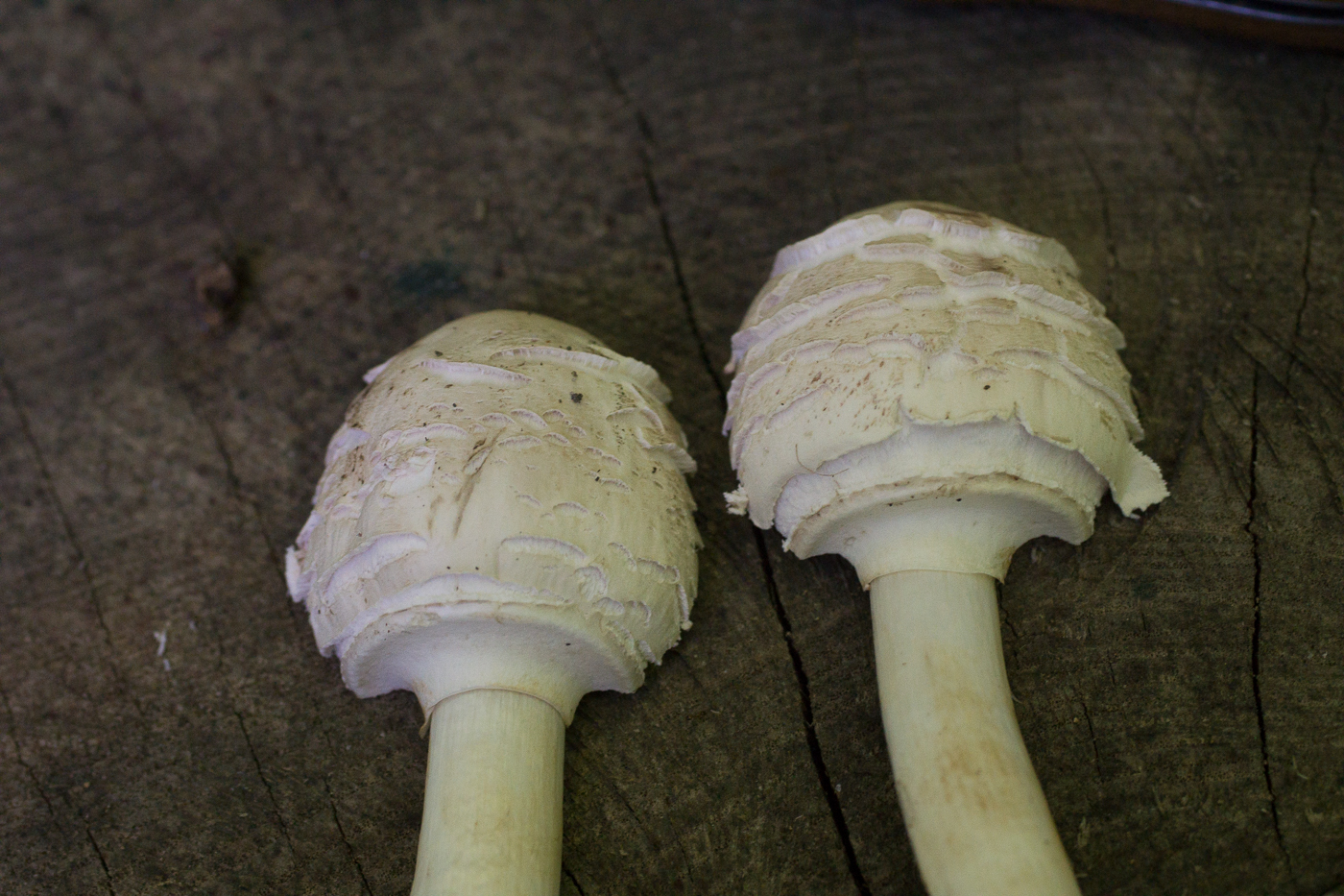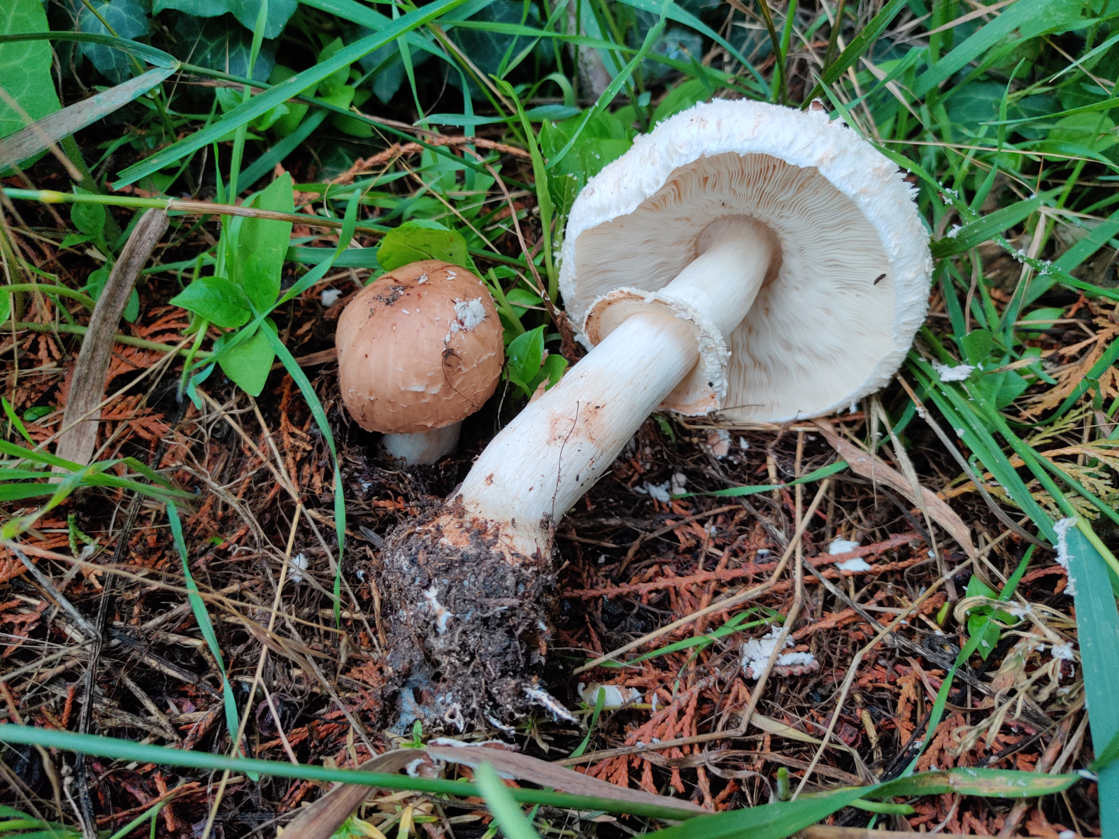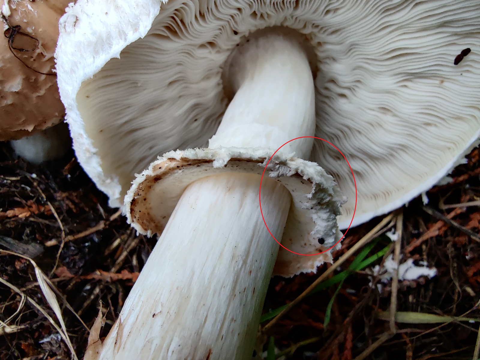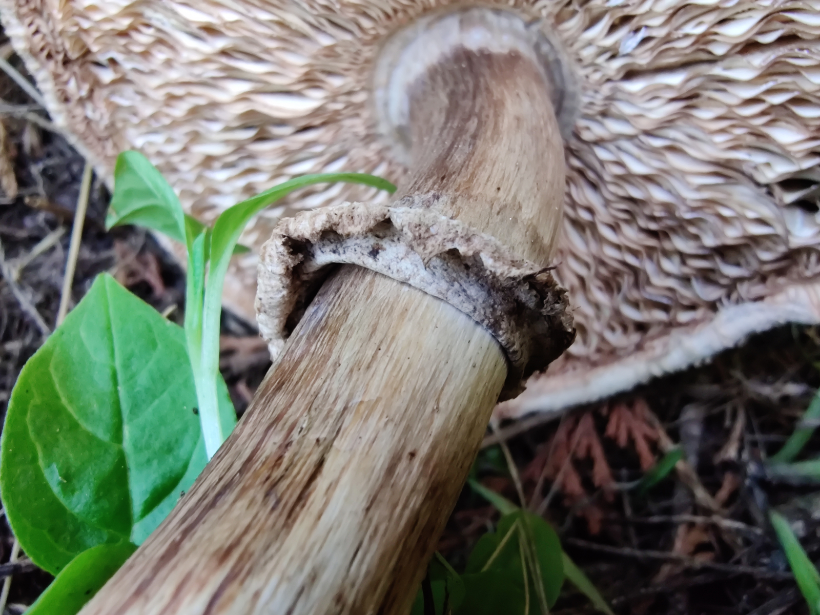 2. Hinter einem Garten fand ich folgende Pilze. Ich bin mir ziemlich sicher, dass es einer aus der Gattung Chlorophyllum ist, bin aber relativ unsicher was die Art angeht. Wegen des einfachen Ringes und der Verfärbung bin ich bei Chlorophyllum brunneum, passt das?