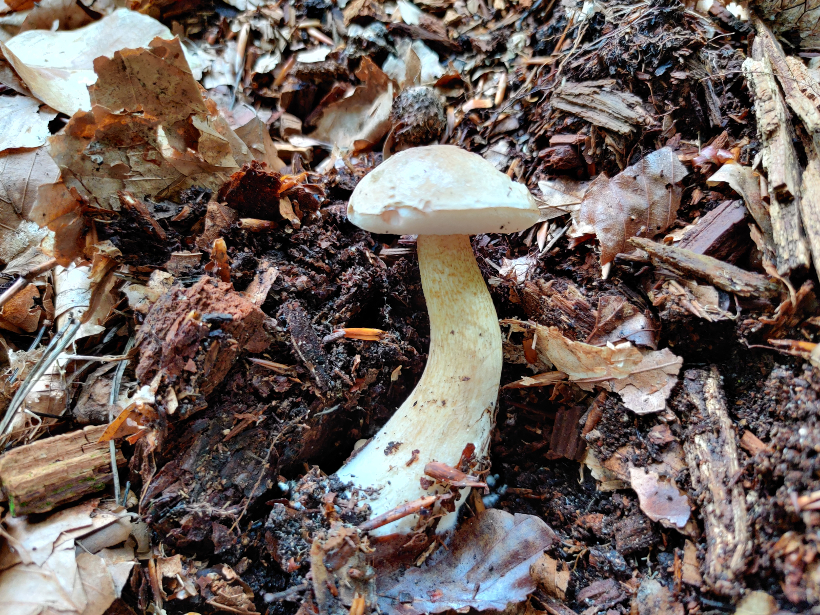 9. Das Highlight für mich, für viele bestimmt schwer nachvollziehbar, der Gallenröhrling (Tylopilus felleus). Auch ein Erstfund für mich. Ich dachte nicht, dass ich den in diesem vorwiegend kalkhaltigen Wald finden kann. Aber anscheinend war diese eine Stelle doch eher sauer. In der Nähe der Fundstelle gab es auch vereinzelt kleine Heidelbeer-Pflänzchen.