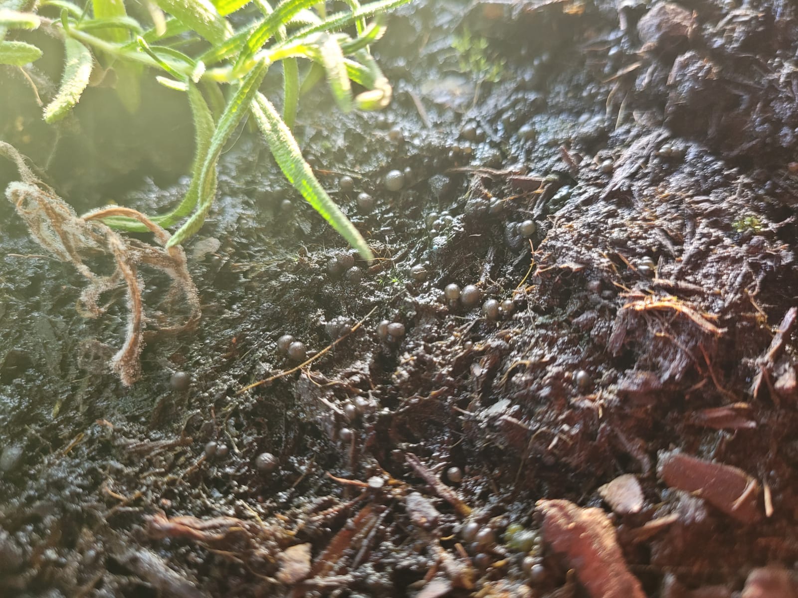 ich habe heute einige schwarz-graue Kugeln in meinem Pflanzregal entdeckt.