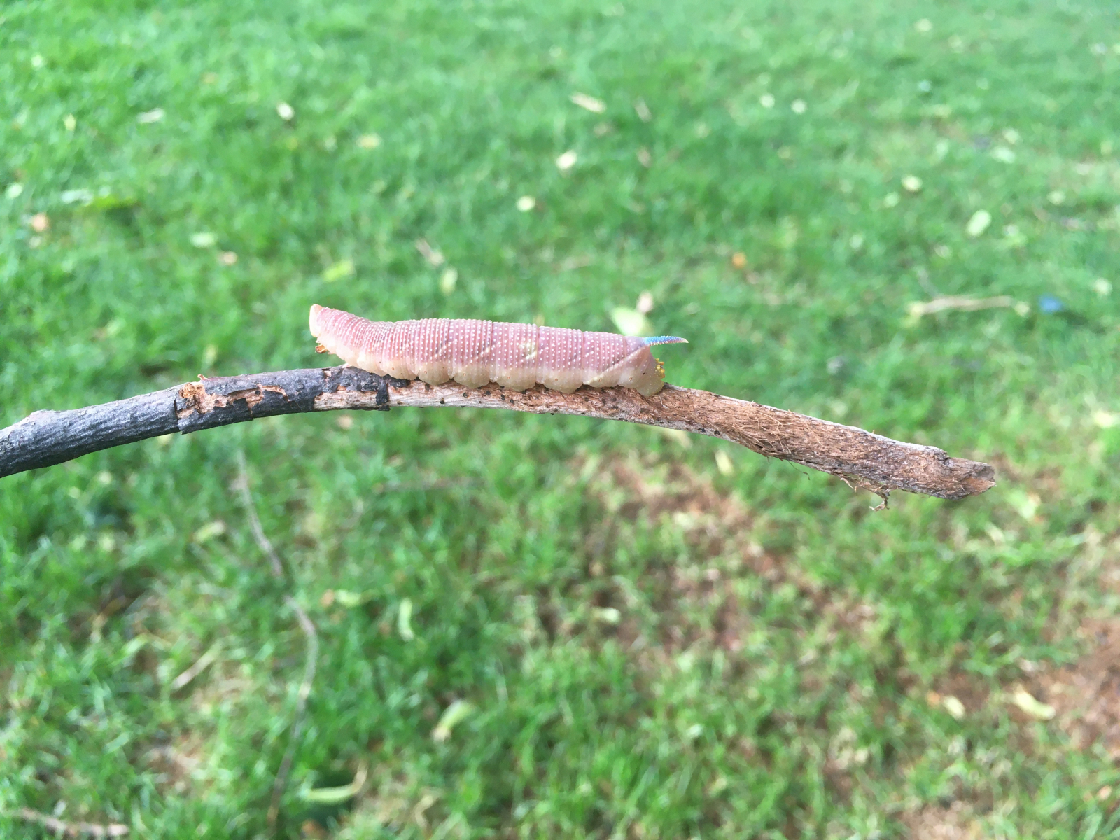 Was werde ich mal? Raupe mit auffallend blauem Sporn