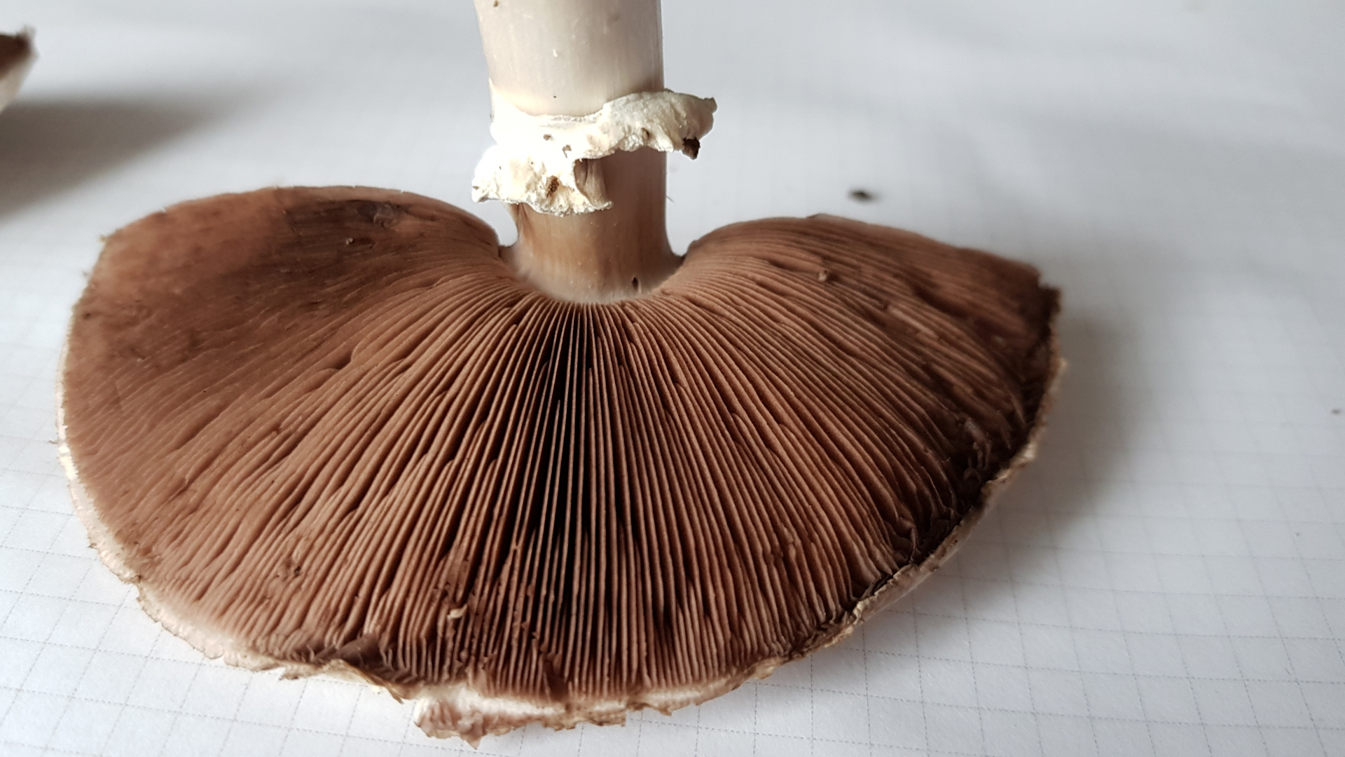Fleisch faserig; Stiel leicht zerbrechend; keine Sollbruchstelle zwischen Hut und Stiel
