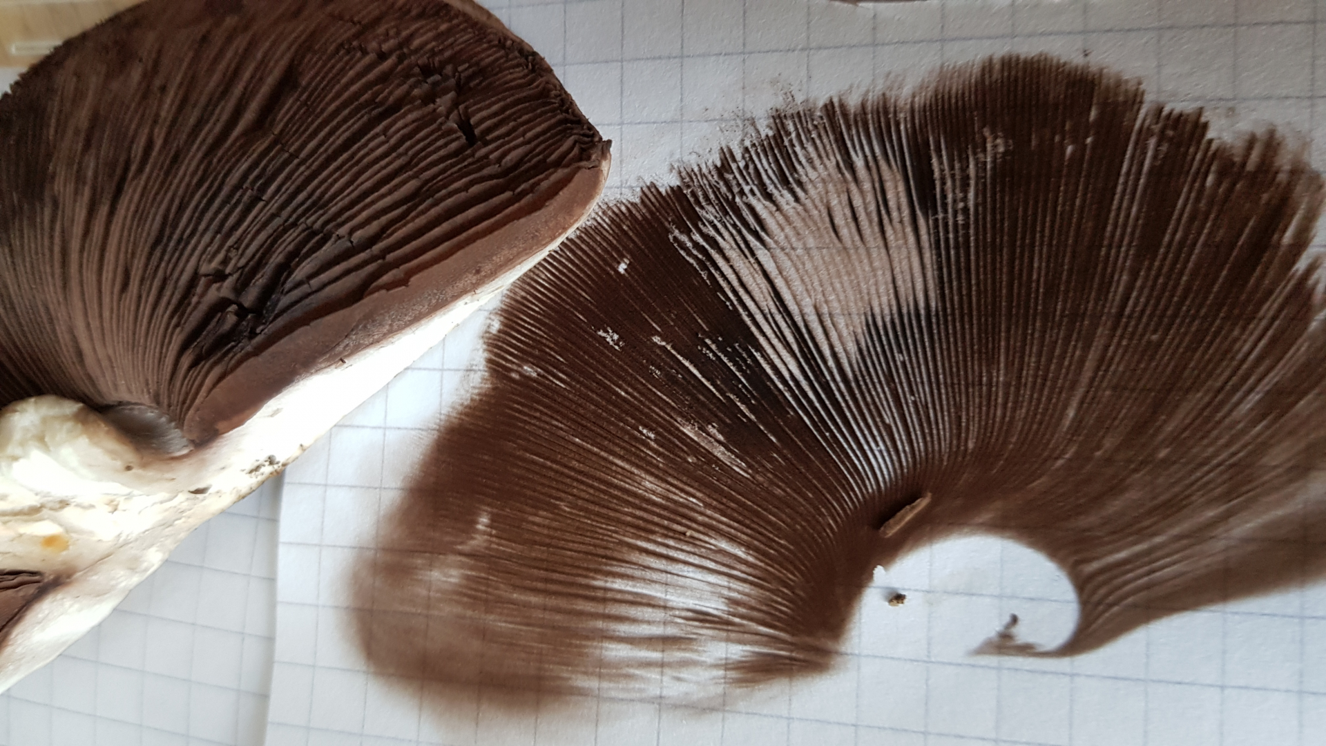 Lamellen nicht ablösbar; werden auf Druck schmierig; Geruch angenehm