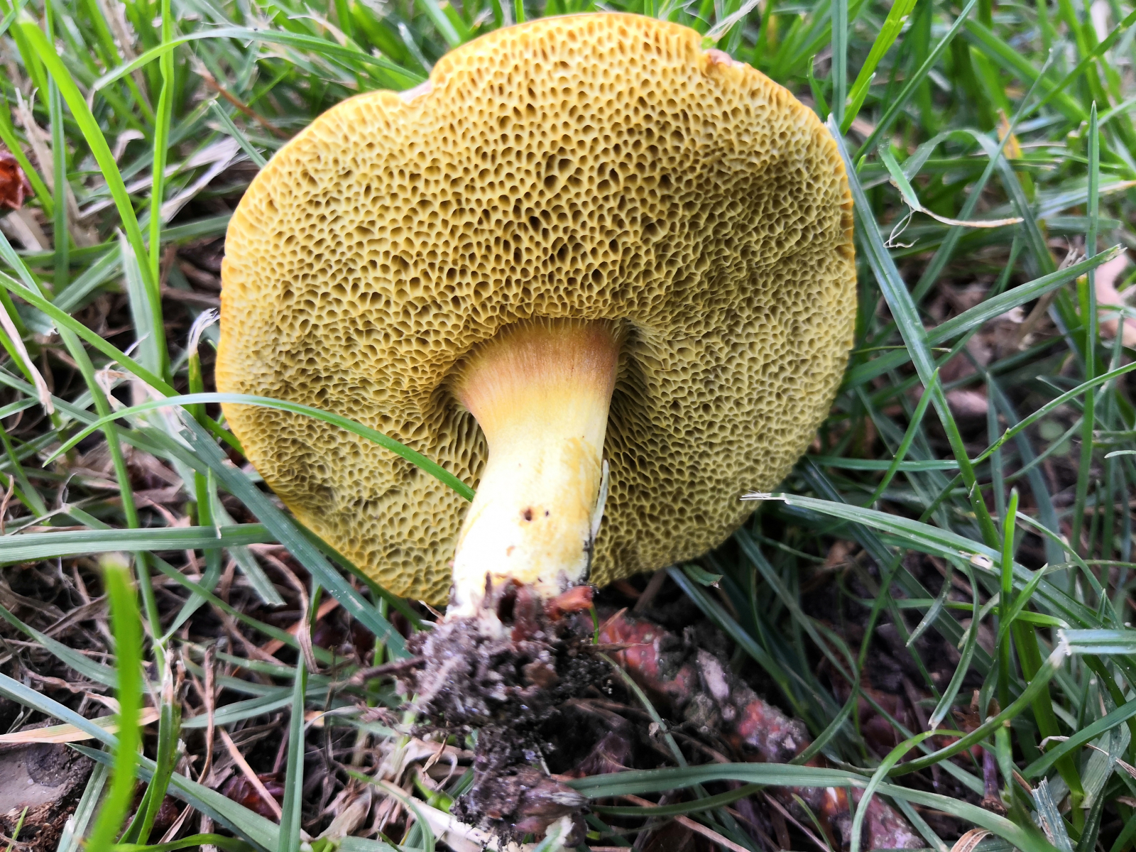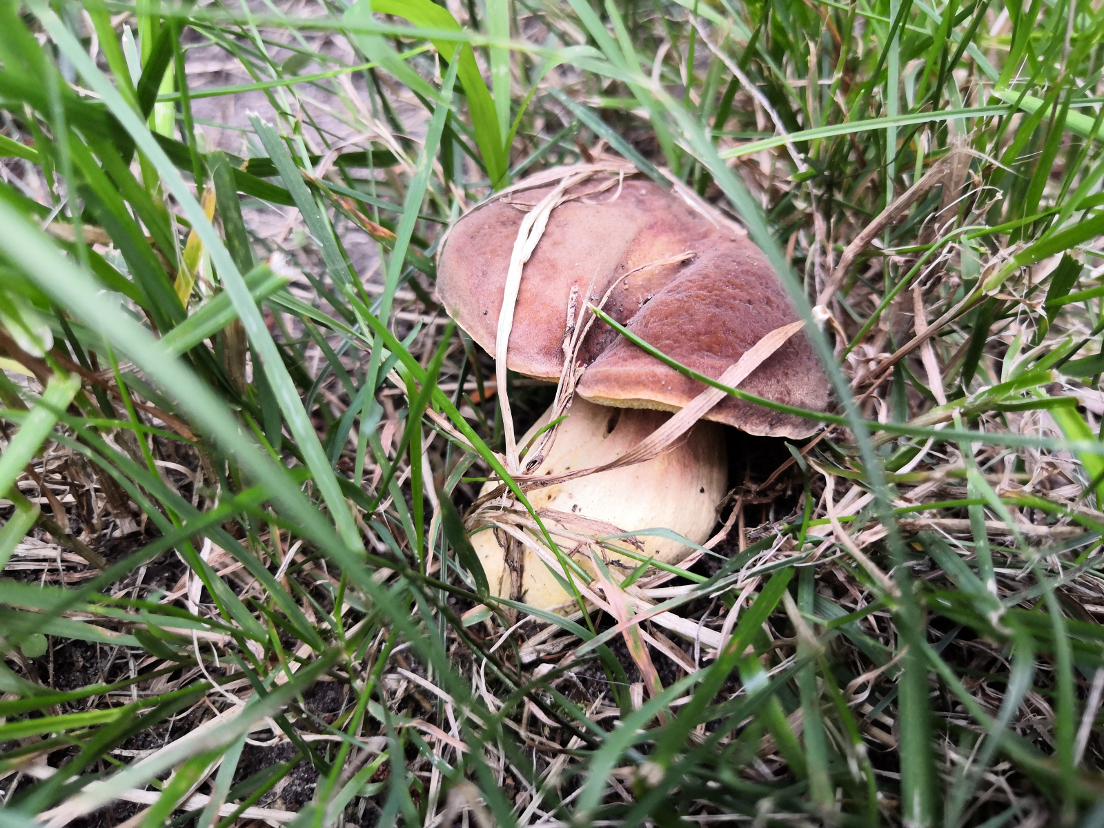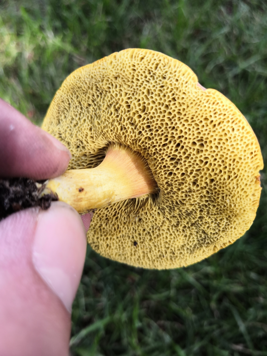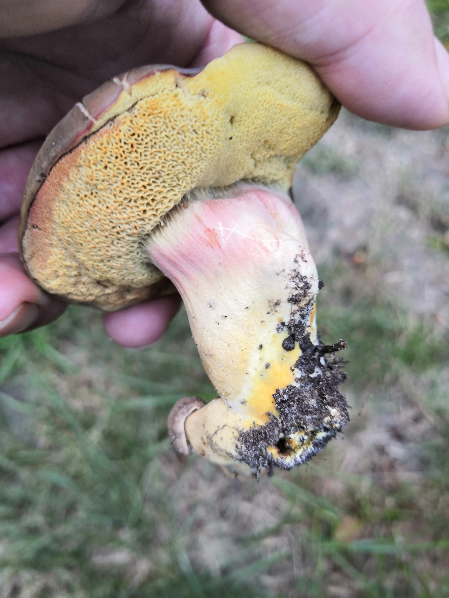 Achso, der Röhrling tritt in kleineren Gruppen von 1-4 Pilzen auf. Eventuell eine Ziegenlippe? Oder doch nur ein aus der Art geschlagener Rotfuß?
