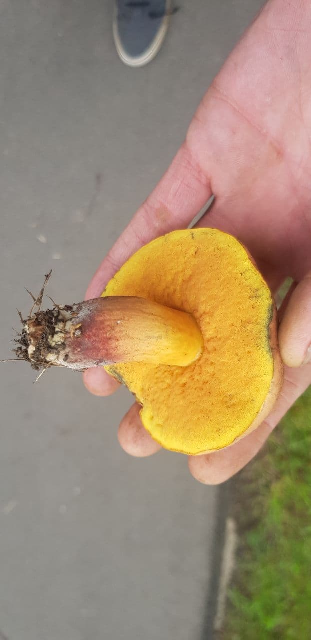 7)Der liegt mir eigentlich am meisten am Herzen. Das müsste eigentlich ein Glattstieliger Hexenröhrling sein, mich verwirrt aber das Kommentar bei 123pilzsuche. Zwei Varianten? Eine mit kaminrotem Hut und eine mit ziegelbraunem? Könnten das beide Varianten nebeneinander gewesen sein? In einer Ahorn/Linden Allee an einer vielbefahrenen Straße gefunden.