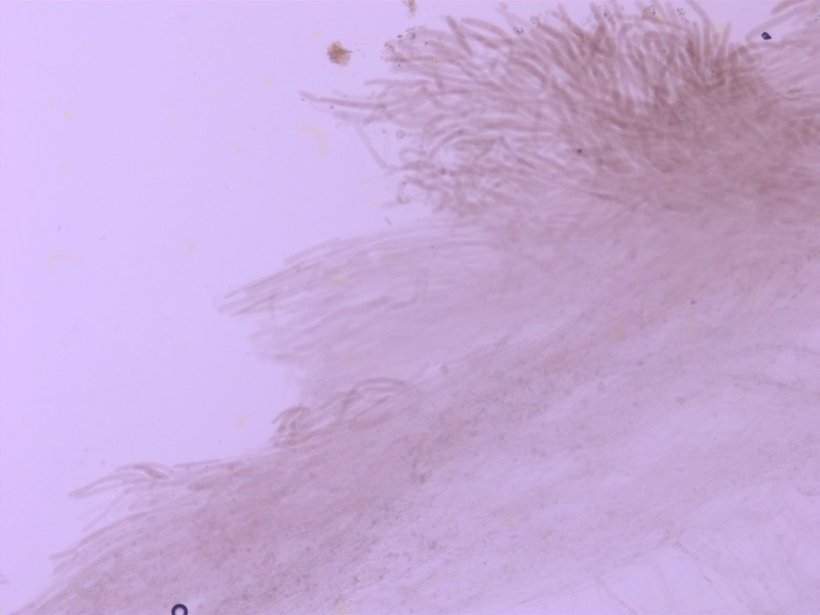 Lamellenschneide heterogen, Cheilozystiden schwer zu finden aber stellenweise vorhanden.