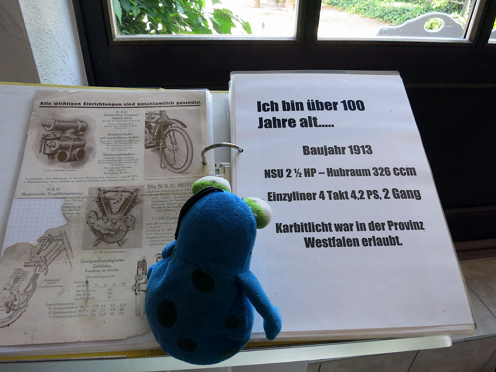 Für Fans von alten Motorädern vielleicht ein Ausflugstipp. Dazu gehört ein riesiger Biergarten, in dem man sicherlich eine schöne ausgedehnte Pause auf einer Tour machen kann.