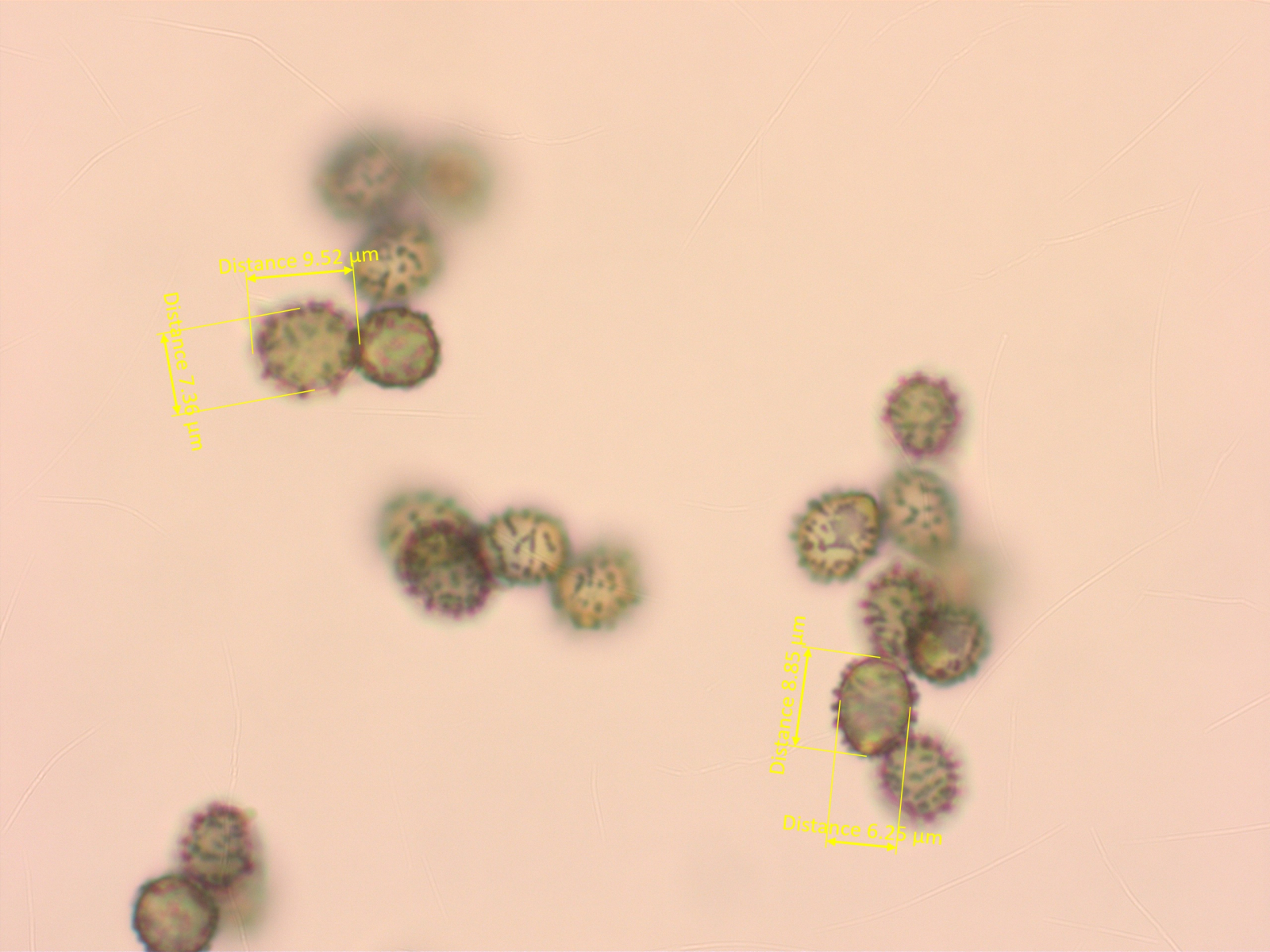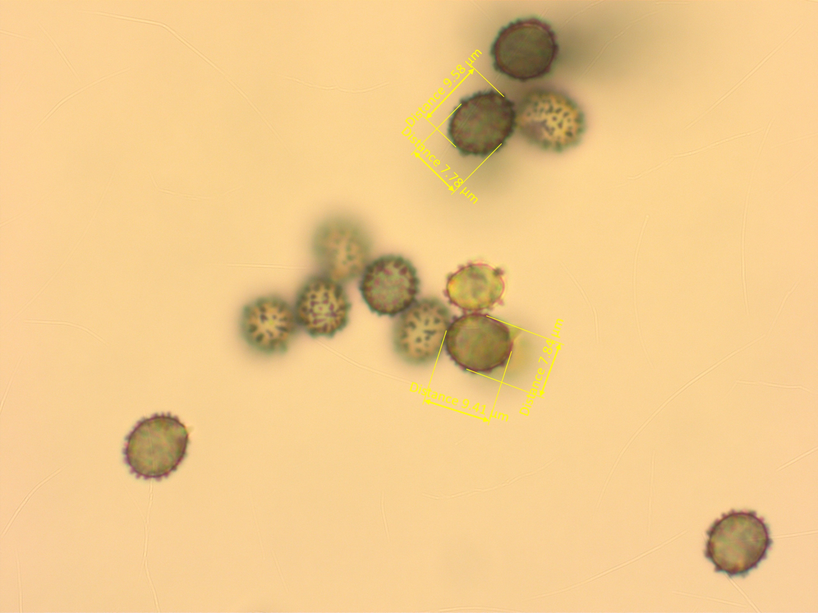 Sporen warzig mit wenigen Verbindungen, um 8-10 x 6.5-7.5 µm