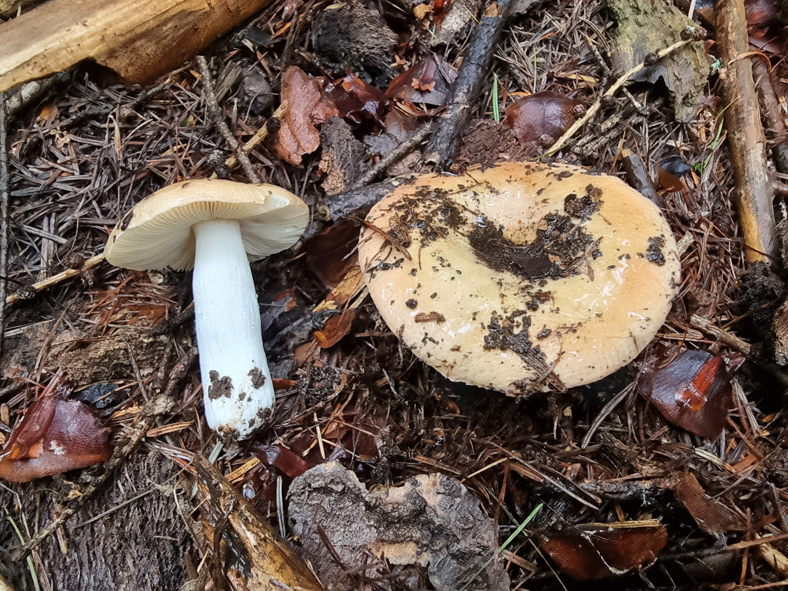zu Nr. 2: du schreibst Sporen isoliert. Auf deinem Sporenfoto sieht man aber kurze Grate und Verbindungslinien zwischen den Warzen. Also zumindest streng isoliert ist dieses Ornament dem Foto nach nicht. Rein optisch kommt für mich zwischen all den Tannennadeln der Hohlstieltäubling (Russula cavipes) in Frage, aber der ist halt nicht mild und liefert auch kein 1a. Fazit: irgendwie passen die Daten hier wieder nicht zusammen.