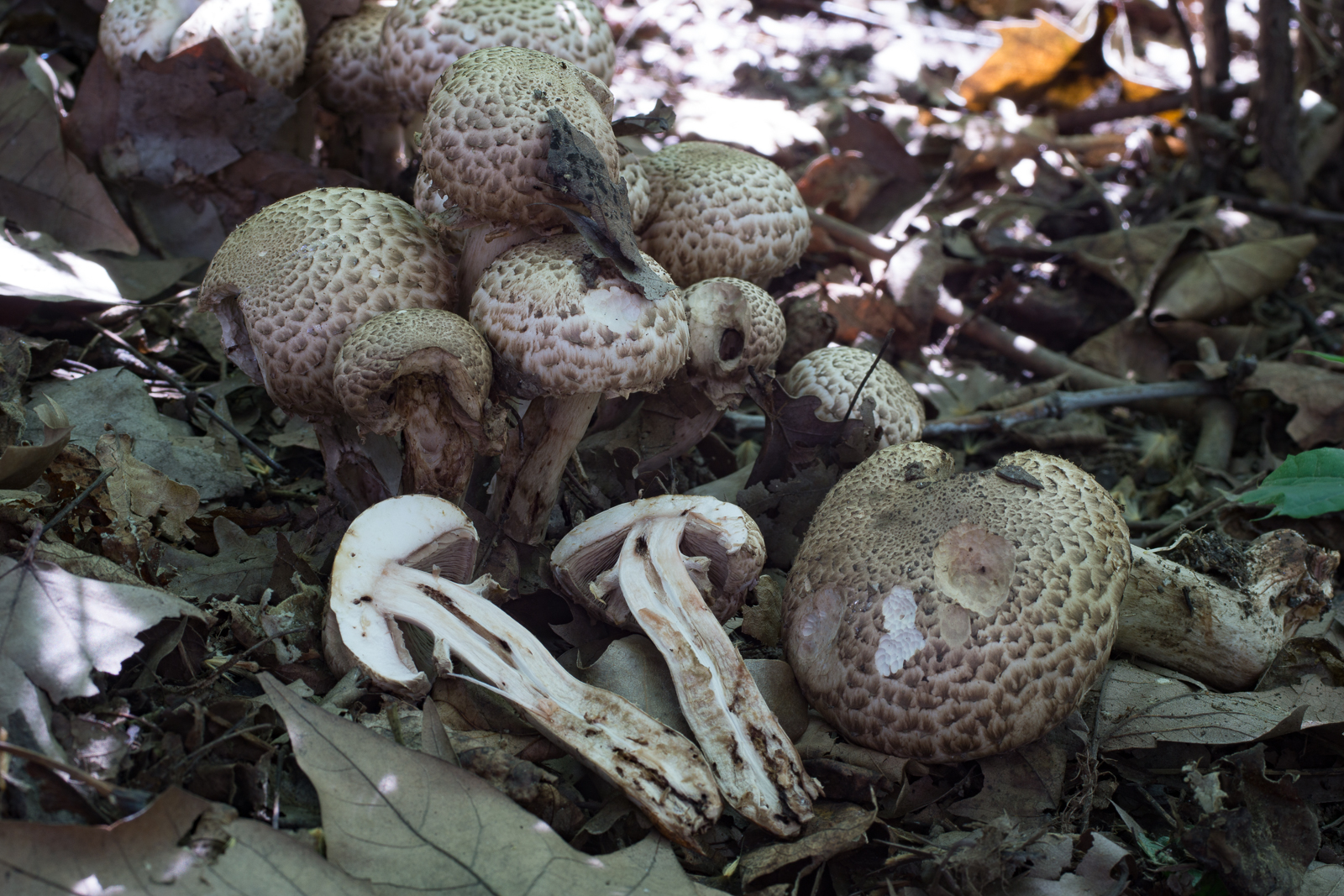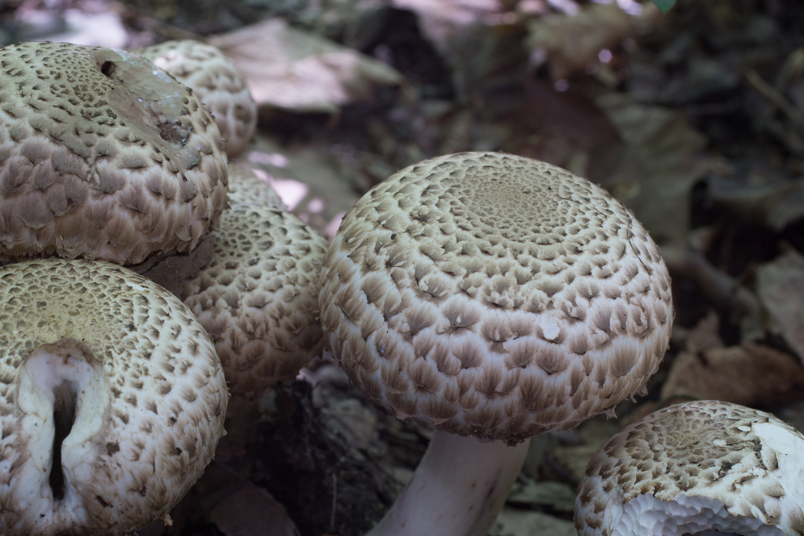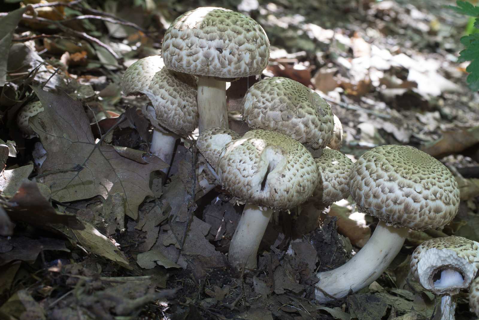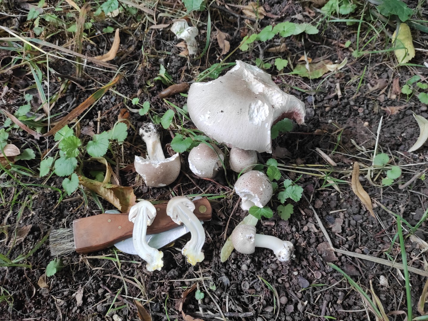 3. Seltsam punktierte Karbolchampignons. Weiß jemand ob das was eigenes ist, oder nur der Variabilität geschuldet? Eins der Hühner ist das eher nicht, denke ich?