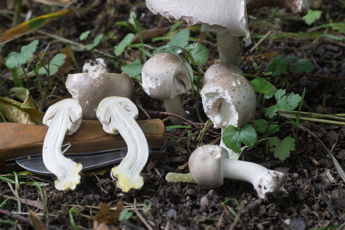 Für den Karbolie wurde mir zwischenzeitlich auch noch A. xanthodermus var. griseus vorgeschlagen. Den kannte ich nicht und der würde mir fast noch besser gefallen, weil so wirklich schuppig waren die ja nicht und auch die dunkle Hutmitte ist alles andere als deutlich ausgeprägt wie sie bei A. moelleri sein sollte.