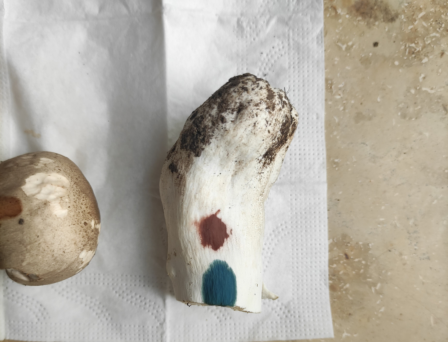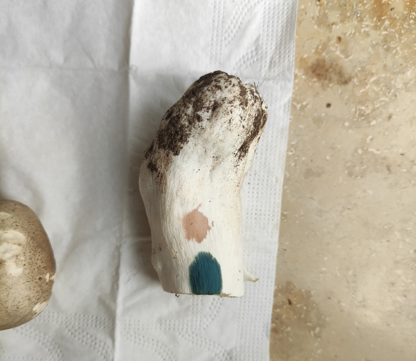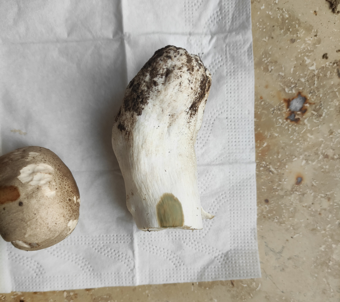 Trotz der gelben Verfärbung (die war schon dran) - einer der Anis-Champignons. Geruch war eindeutig und zeigt wieder wie schwierig Bildbestimmungen in der Gattung sein können.