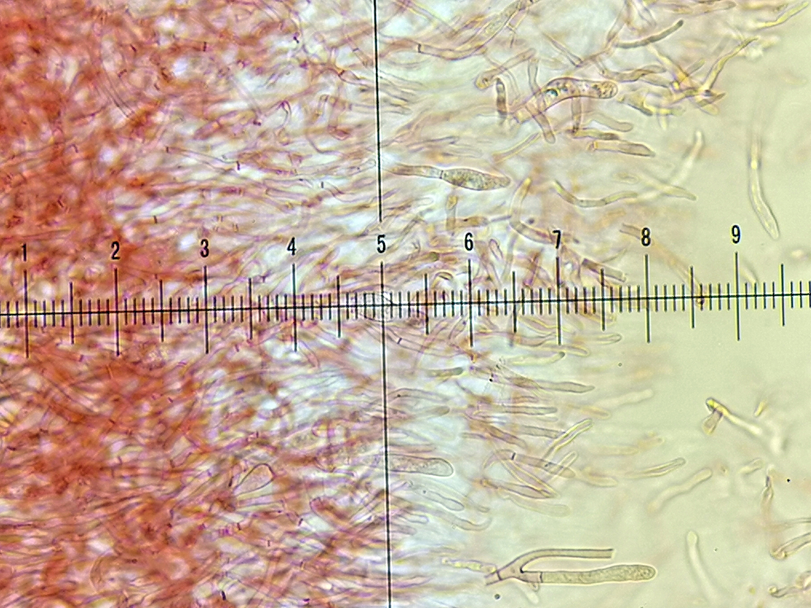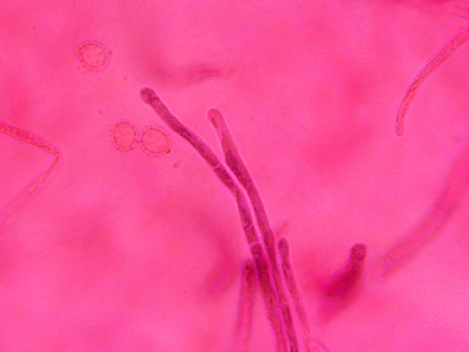 Mein größtes Problem ist hier gar nicht sicher sagen zu können ob das nun Inkrustierte Primordialhyphen oder inkrustierte Dermatozystiden (soll es bei einigen in Frage kommenden Arten der Laetinae geben!) sind.