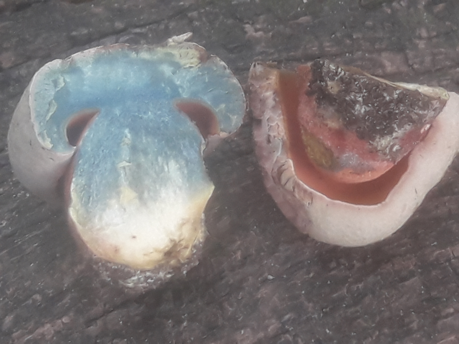in meiner Literatur wird als einziges sicheres makroskopisches Unterscheidungsmerkmal auf die Bläuestärke beim Anschnitt verwiesen.