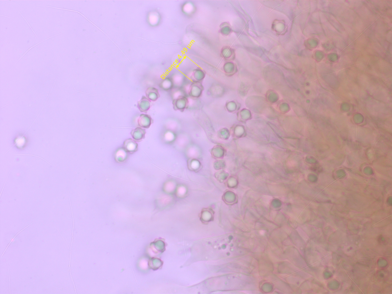 MAkroskopisch allerdings sieht das schon verwegen aus. So habe ich das noch nie gesehen, was mich jetzt auch verunsichert. Hydnellum scrobiculatum hatte ich leider noch nie in der Hand oder unterm Mikro.