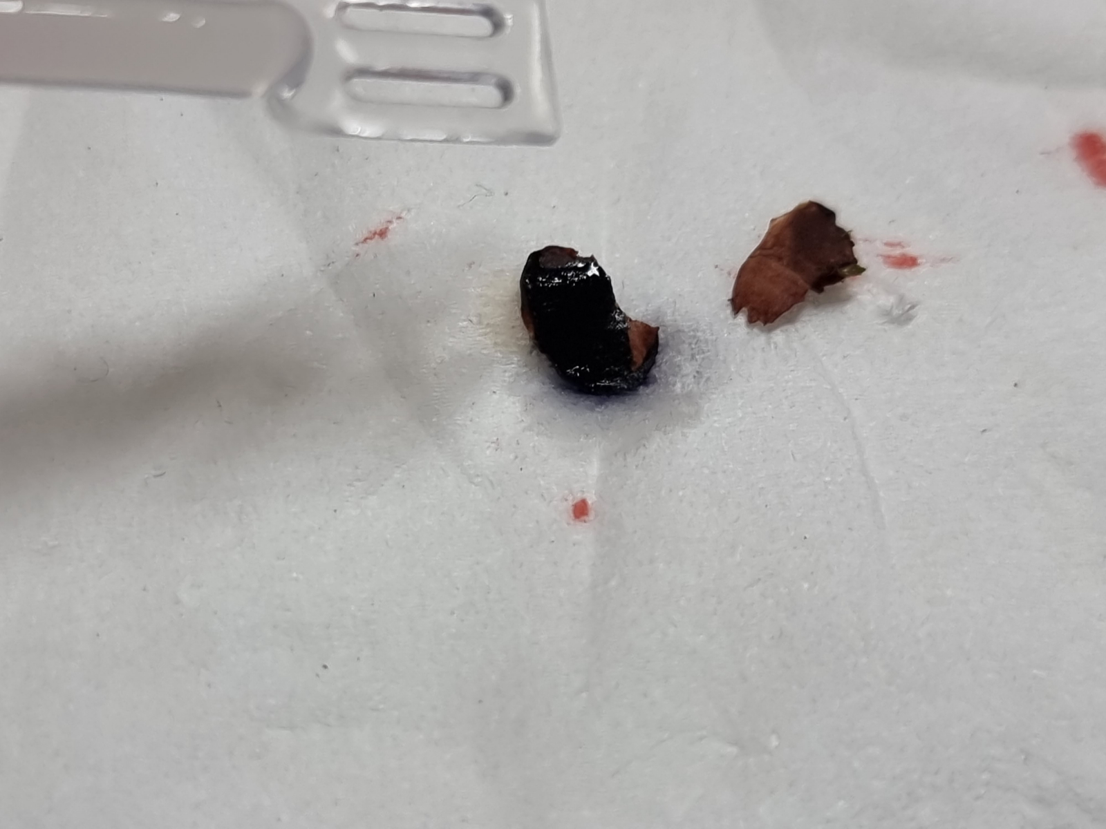 Da scheint die KOH-Reaktion wichtig zu sein, also habe ich die gemacht (20%-Lösung):