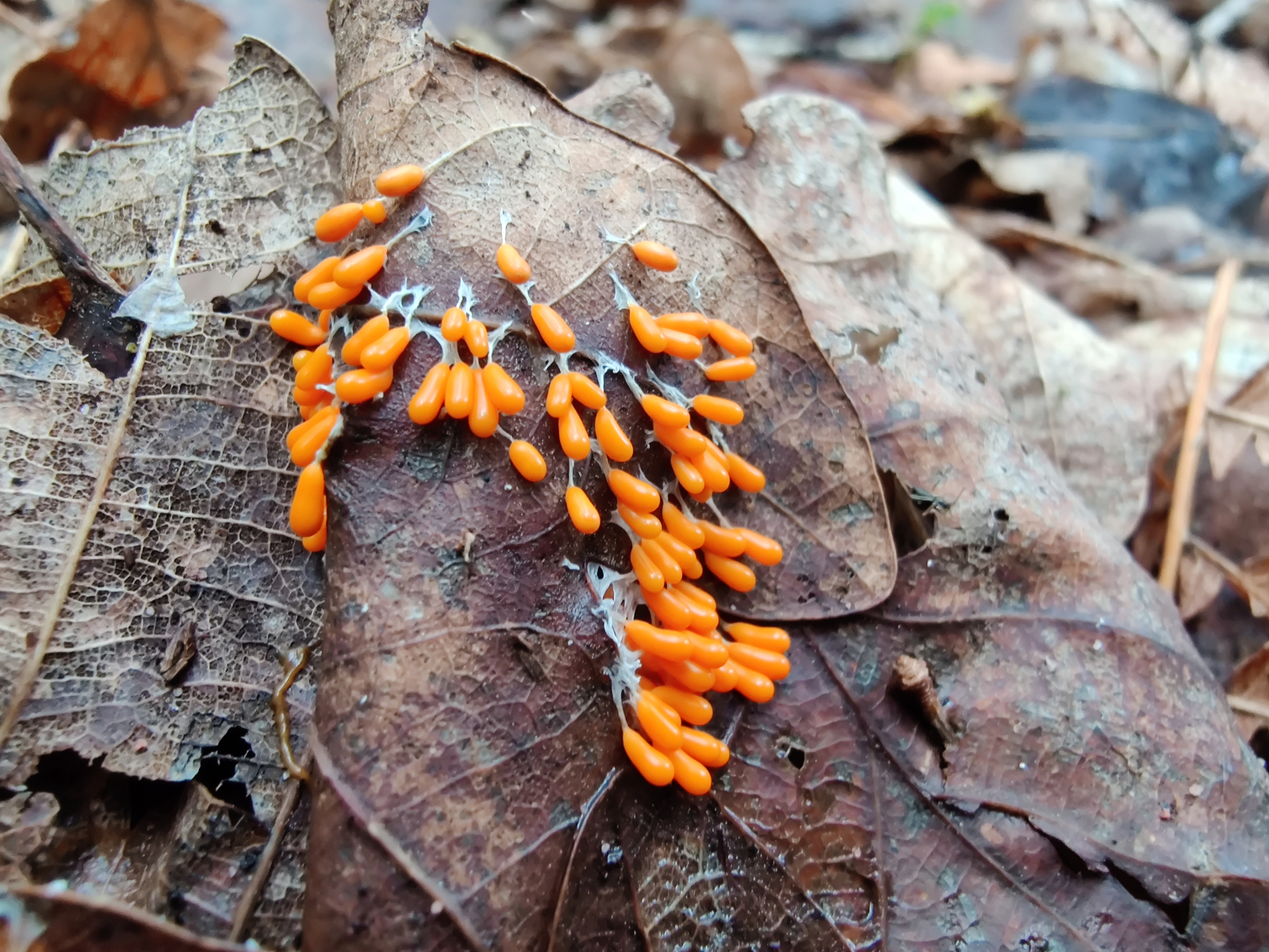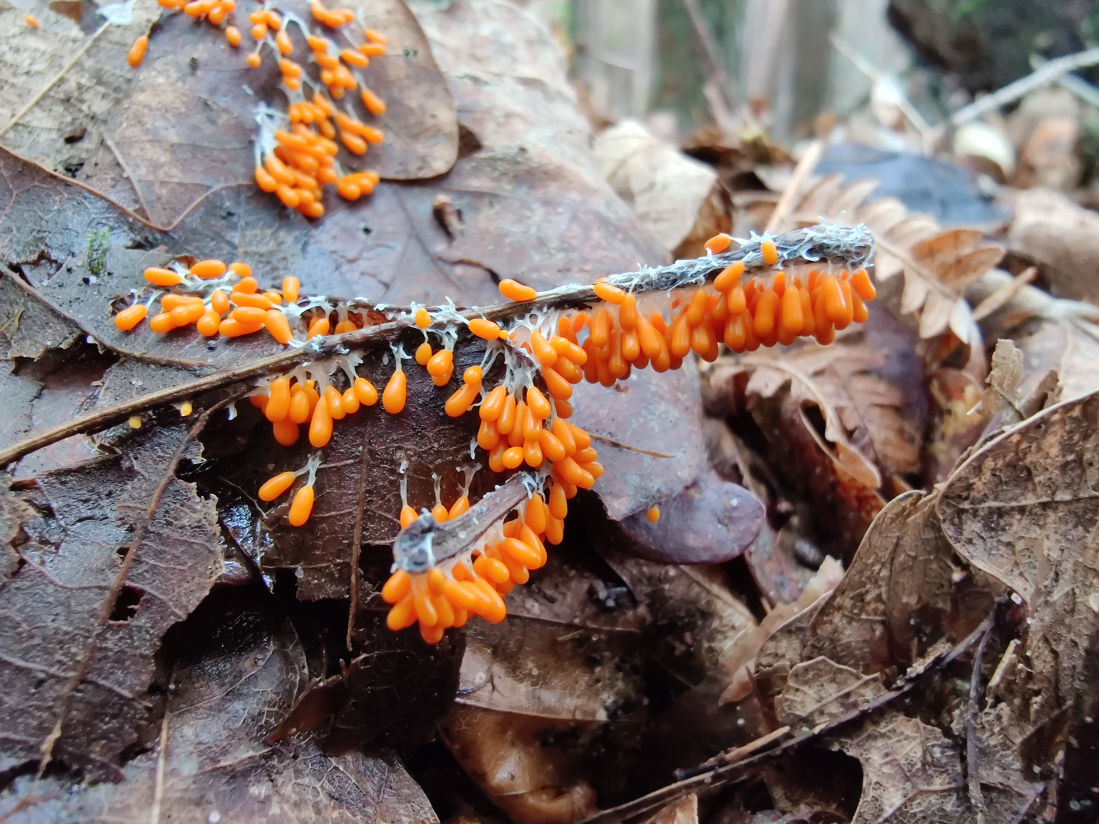 4. Immer wieder sind mir Schleimpilze aufgefallen. Näher angeschaut hatte ich mir nur einen, auch ein Erstfund. Das Löwenfrüchtchen (Leocarpus fragilis)