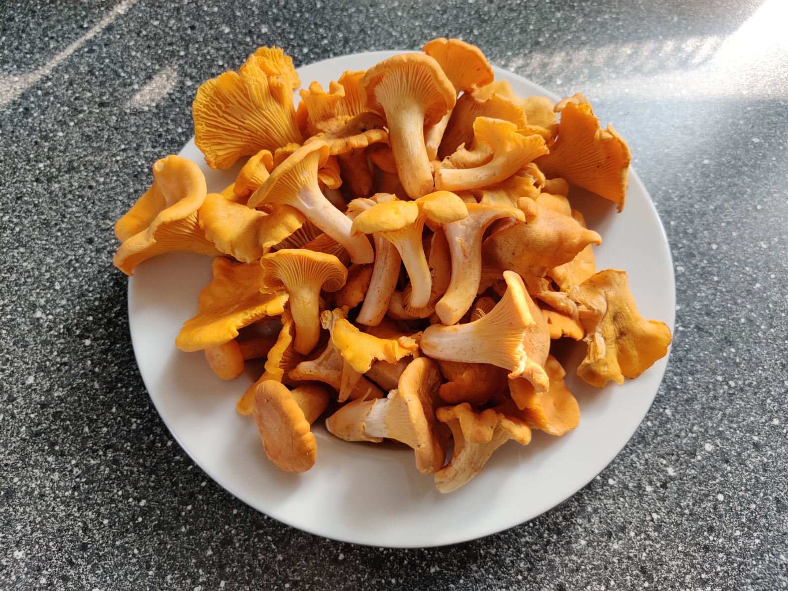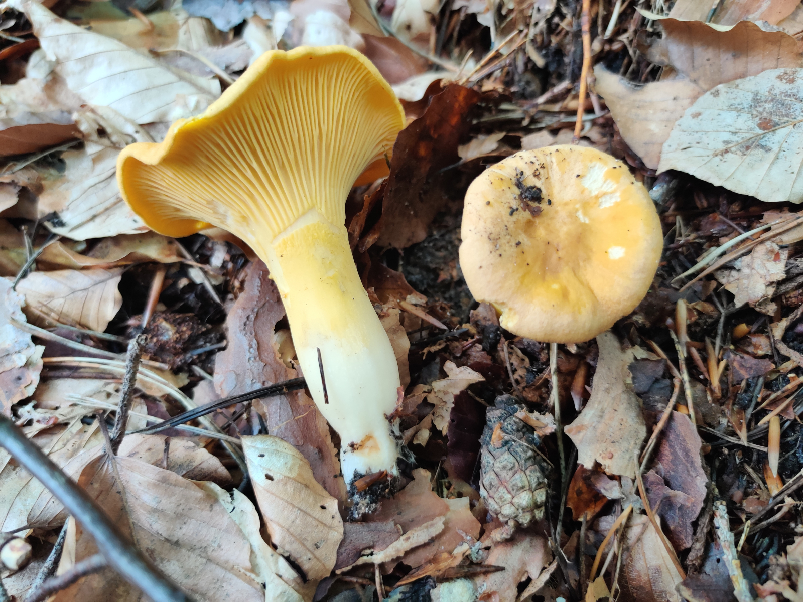7. Am Wegesrand gab es immer wieder vereinzelt Pfifferlinge (Cantharellus cibarius) im besten Alter. Für einige Exemplare musste man die Steilhänge wenige Meter hoch kraxeln