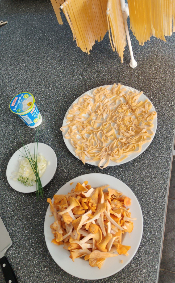 Aber der Aufwand hat sich gelohnt, am Tag darauf gab es die Köstlichkeiten mit selbst gemachten Bandnudeln. Der 5. und letzte Erstfund war der Samtige Pfifferling (Cantharellus friesii) von dem ich leider versäumte ein Foto zu knipsen.