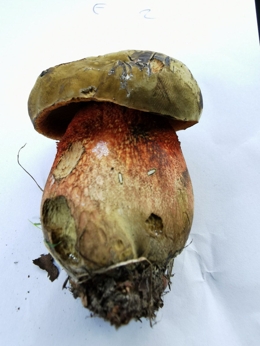 3. Bei dem Röhrling, gefunden unter Birke, würde ich auf den Flockenstieligen Hexenröhrling Boletus erythrops tippen. Allerdings blaute er fast garnicht und ich frage mich, ob die Röhren nicht roter sein müssten. Den fensterlederartigen Filz hingegen kann ich dann wiederum sehr gut nachvollziehen.
