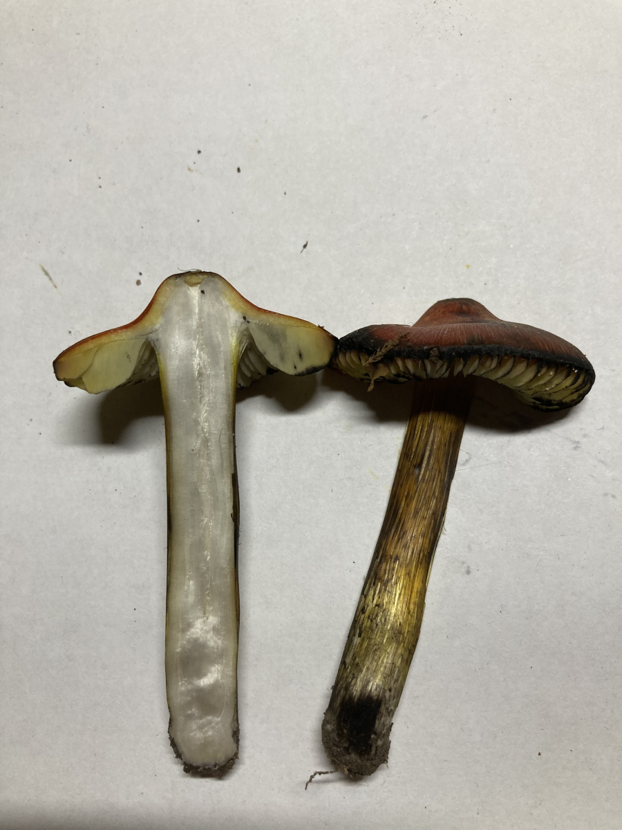 Nach etwa 5 h deutliche Schwarzfärbung an Hutrand und Lamellen.