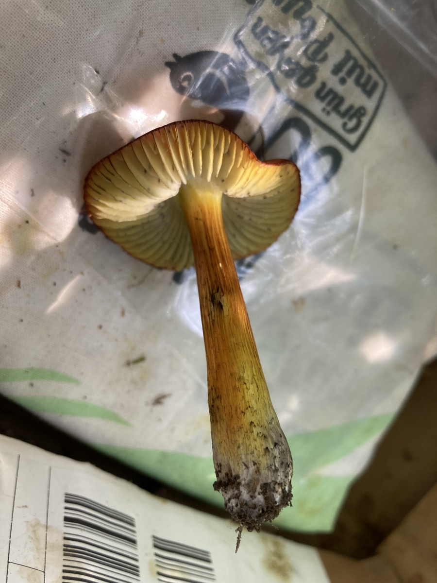 Stiel: gelb-orange gefärbt, faserig, zur Basis hin aufhellend.