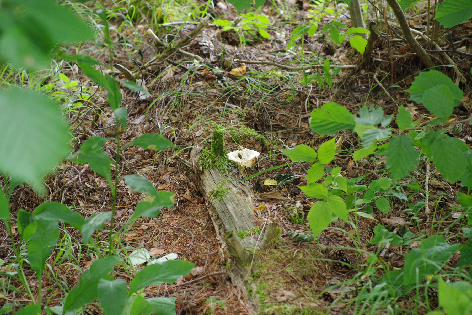 Am ehesten finde ich Lentinus cyathiformis passend, da schreibt Pablo ( Lentinus cyathiformis = Becherförmiger Sägeblättling ) aber, dass der nur auf Laubholz in Auen wachse. Das Biotop ist hier aber trockener, lichter Kiefernwald auf Moräne (etwa FFH-Lebensraumtyp 9060). Von den von Pablo genannten Verwechslungsartem käme höchstens noch Lentinus adhaerens in Frage, weil auf Nadelholz, aber hat kein weißes Fleisch. Oder etwa doch in alt? Nach etwas Regen wird es den bestimmt auch wieder in frisch geben.