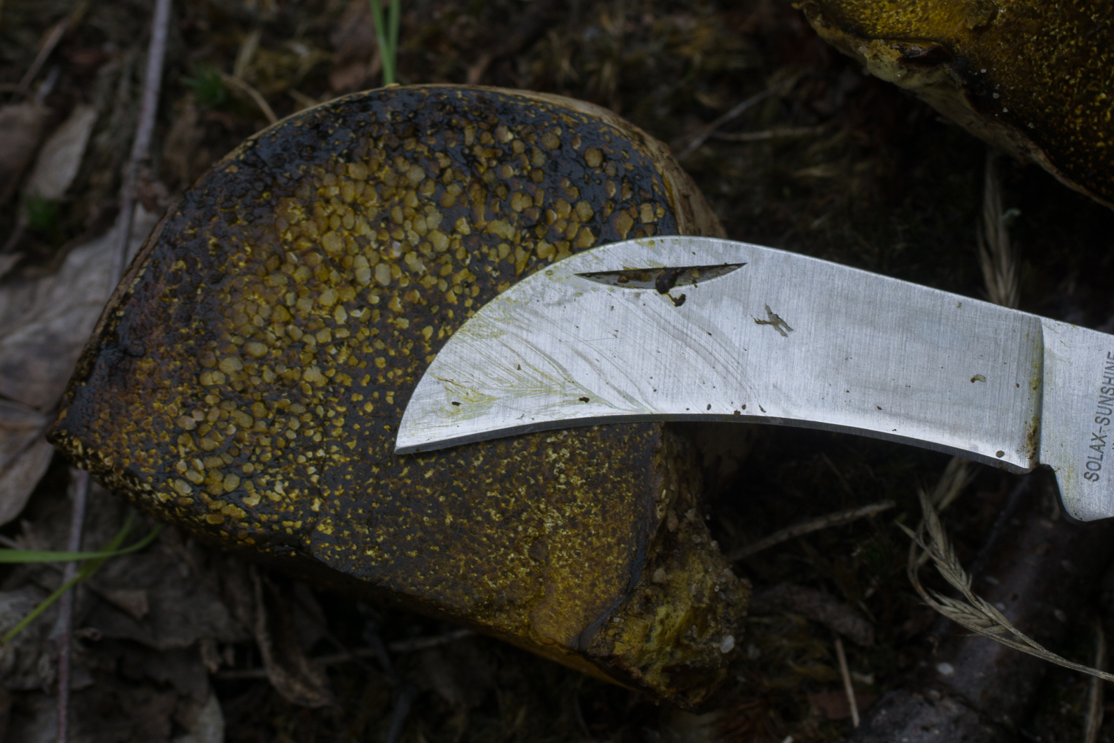 Ansonsten aber recht konsistent zum Verfärbungsverhalten des Pappel-Raufußes. Sicherlich nah verwandt. Langsam dunkelt das Fleisch auch nach. Auf jeden Fall muss ich ich einen Beleg anfertigen. Wo habe ich eigentlich mein Messer schon wieder?