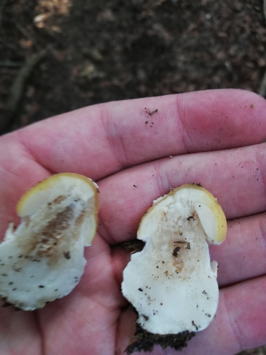 Zumal mit der Velumstruktur - vor allem dem dünnen, oberseits völlig glatten Ring - und der dicken, durchgehend gelben Huthaut ein perlpilz ohnehin eigentlich auszuschließen ist. Der kann zwar mal einen gelblichen Hut haben, aber so einen Ring eher nicht und auch wenn der Hut gelb ist, würde das noch mal ein leicht andeer Farbton sein.Lg; Pablo.