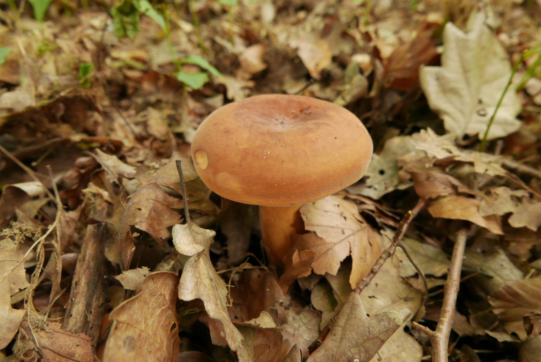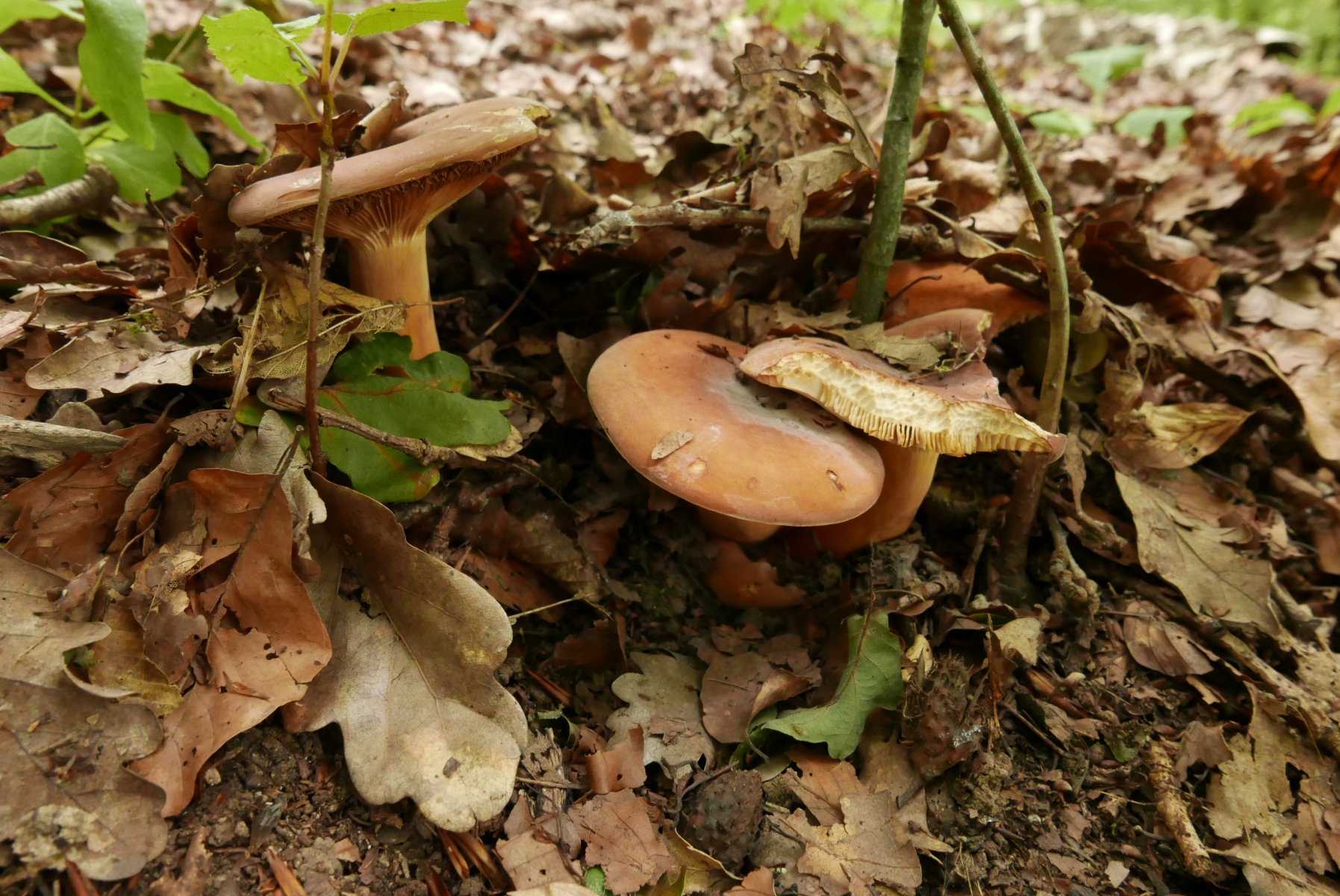 Allerdings sind die weiteren Begleitpilze ganz andere. In diesem Jahr sind die Eichhasen schon durch, dafür wachsen ganz frische Steinpilze (und Filzröhrlinge (ich vermute Ziegenlippen), siehe im Bild mit den Pfeffermilchlingen oben),