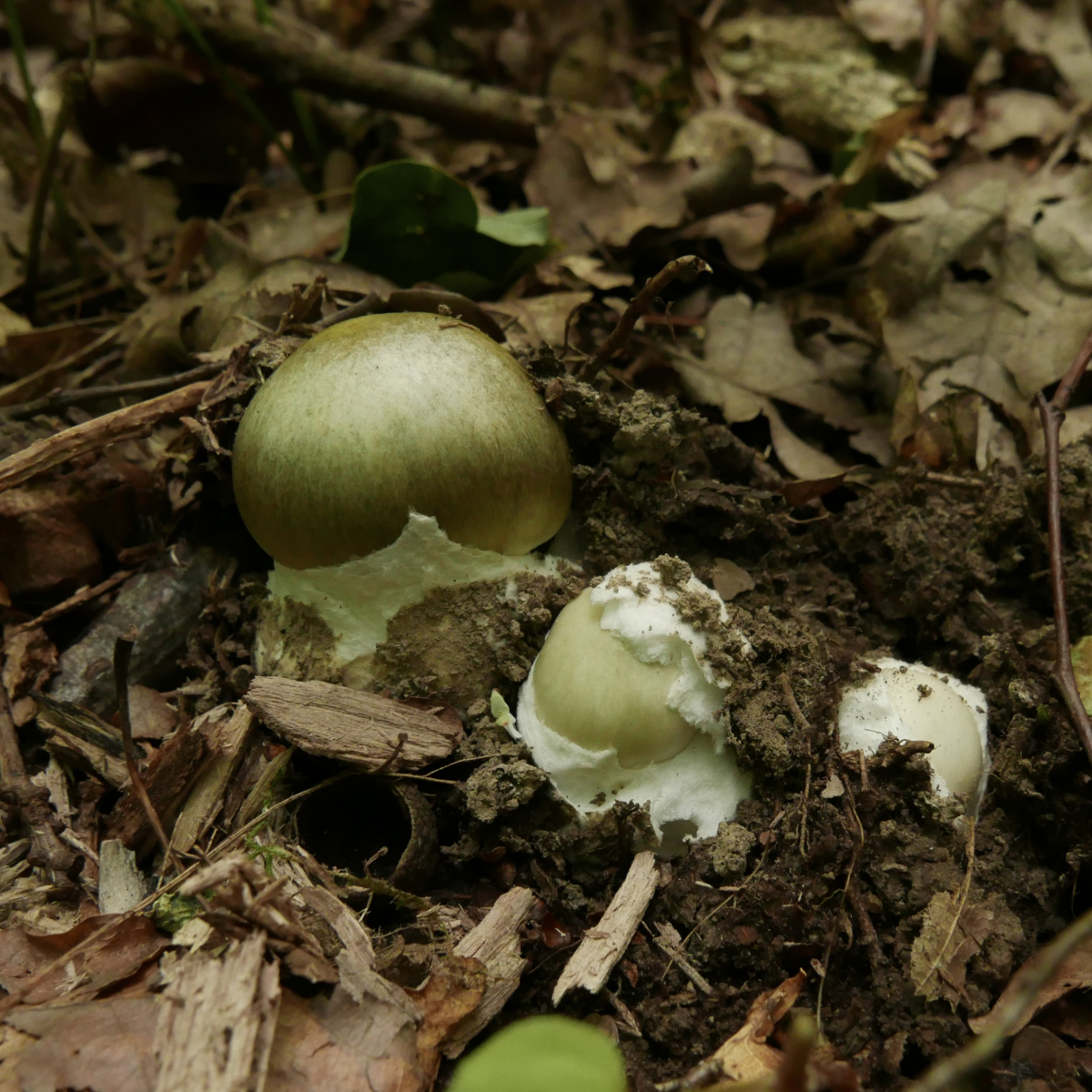 und massenweise Grüne Knollenblätterpilze.
