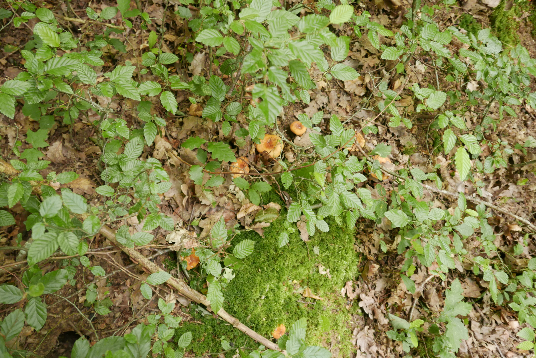 Allerdings sind die weiteren Begleitpilze ganz andere. In diesem Jahr sind die Eichhasen schon durch, dafür wachsen ganz frische Steinpilze (und Filzröhrlinge (ich vermute Ziegenlippen), siehe im Bild mit den Pfeffermilchlingen oben),