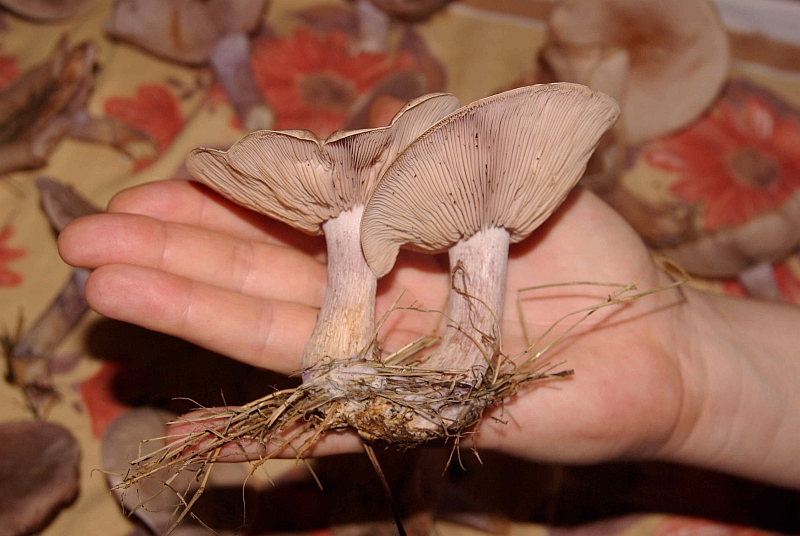 heute (20.12.2009) habe ich eine ganze Menge Pilze (eng zusammenstehend) auf dem Kompost hinter unserem Schuppen gefunden (Bilder anbei). Der Kompost besteht vorwiegend aus geschnittenen Rasenabfällen und ist geschützt von Koniferen (also schattiger Standort). Laut Bestimmungsbuch und Internetrecherchen tippen wir auf Rötelritterling (Lilastiel oder Violetter, Stiel lila angelaufen, faserig, Lamellen sind eher gräulich/bräunlich mit lila Schimmer, das Hutfleisch ist weißlich zur Mitte, Stiel, cremefarben), sind uns aber nicht sicher, da der Stiel meist nicht so dick (bei älteren Exemplaren hohl) wie beschrieben ist und der Hut schon frühzeitig Trichterform aufweist.